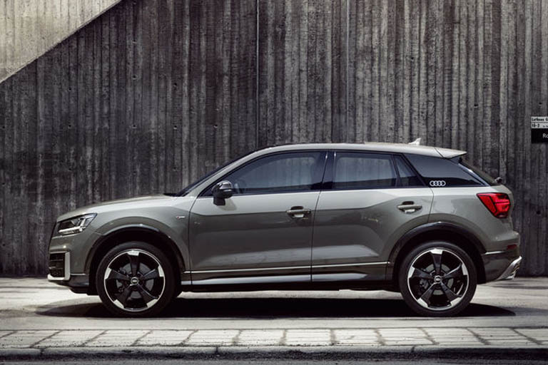 Mit seinem polygonalen Design bereichert der Audi Q2 nach Ansicht von Experten die Formensprache der Marke um neue Facetten. An der Front sorgen der hoch positionierte Singleframe-Grill im Oktagon-Design sowie große Lufteinlässe für einen starken Auftritt. Auch an den Flanken spielt der Q2 mit polygonen Formen. Unter den Fenstern teilt sich die scharf gezogene Schulterlinie in zwei übereinander liegende Konturen auf. Sie fassen eine konkave Fläche mit sechs Ecken ein. Der Einzug der Flanken betont die Räder und mit ihnen den quattro-Charakter des Audi Q2.