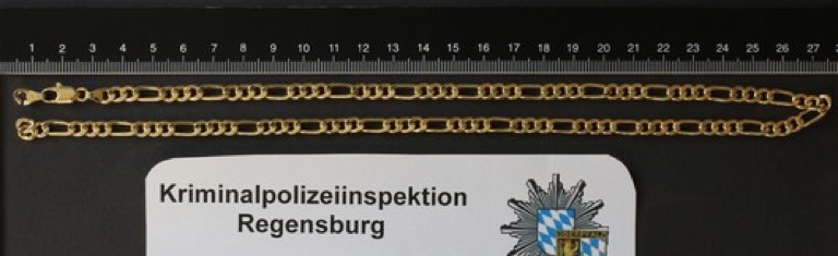 (ty) Ein 34-jähriger Wohnsitzloser hat in Regensburg verschiedenen Goldschmuck verkauft und war so ins Visier der Kriminalpolizei geraten. Nun suchen die Ermittler nach den rechtmäßigen Eigentümern dieser Stücke. Es geht um eine goldene Halskette sowie um drei mit Edelsteinen besetzte Goldringe. Die Kripo geht davon aus, dass es sich um die Beute einer Straftat handelt.