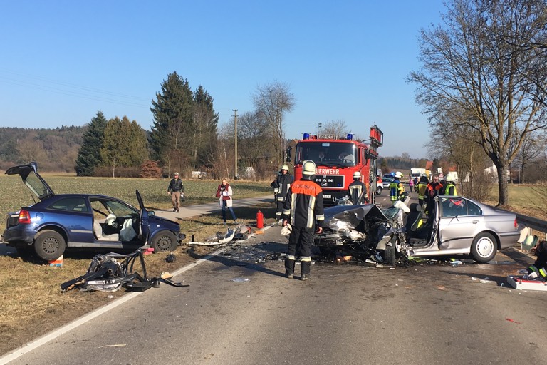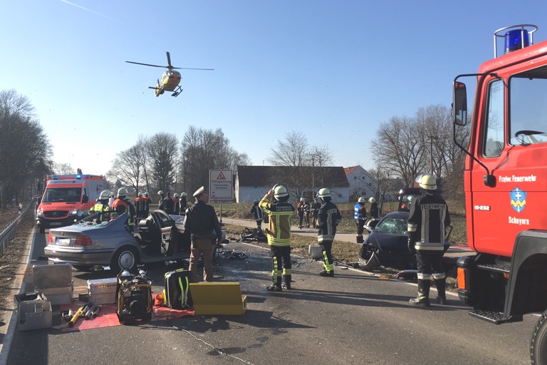 Der BMW-Fahrer musste nach der Erstversorgung vor Ort vom Rettungshubschrauber ins Klinikum nach Ingolstadt geflogen werden; die Opel-Lenkerin wurde mit einem Rettungswagen ins Krankenhaus nach Schrobenhausen gefahren. Ein Hund, der sich mit in dem Opel befand, wurde nach Angaben der Polizei ebenfalls verletzt. Um ihn kümmerte sich eine Tierärztin.