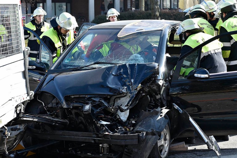Schwer verletzt und im Auto eingeschlossen (Foto oben)