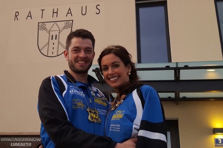Narrhalla-Prinzenpaar vor dem Rathaus: Georg Ott und Carina Spiegl.