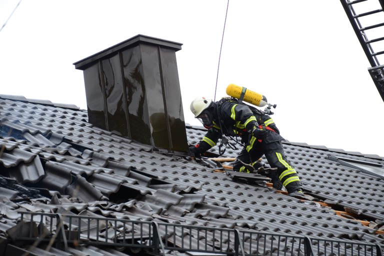 Das Problematische an solchen Bränden sei außerdem, dass man ein Feuer, das sich im Dachbereich – zwischen Ziegeln, Latten, Isolierung und Folie – ausbreitet, eben nicht sieht. „Man muss das Dach öffnen, es freilegen, um zu dem Brand vorzudringen“, erläutert Schweigard. Die Gefahr: Gelingt es nicht, alle Brandherde zu identifizieren und vollständig abzulöschen, breiten sich die Flammen immer weiter aus und am Ende kann der gesamte Dachstuhl brennen.
