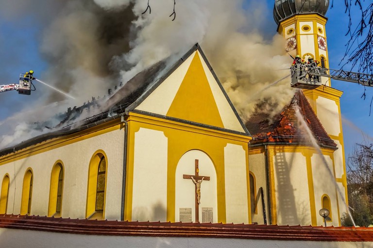 Nach den bisherigen Erkenntnissen wurden die Dachstühle der beiden Kirchenschiffe durch das Feuer total zerstört. Die Filialkirche, die zur Pfarrei Sollern gehört, ist dem Heiligen Martin geweiht und wurde anno 1770 errichtet. In den Jahren 1871 und 1901 wurden Renovierungsmaßnahmen vorgenommen. Erst im Jahr 1981 war das Gotteshaus erweitert worden; unter der Regie von Architekt Blasius Spreng wurde ein Anbau neu errichtet.