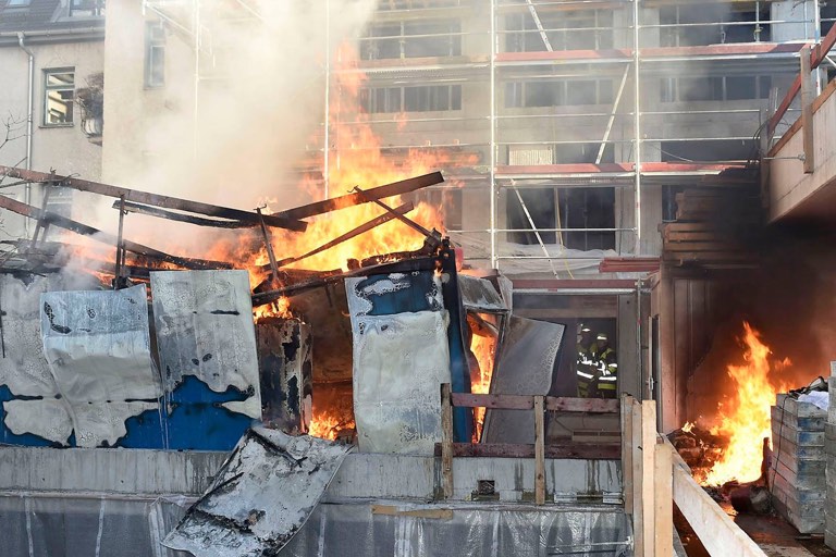 (ty) Nach dem Brand sowie der anschließenden Explosion eines Baustellen-Containers in München-Schwabing ermittelt die Kripo. Obwohl sich während des Vorfalls zehn Arbeiter auf der Baustelle aufhielten, wurde nach Angaben der Polizei zum Glück niemand verletzt. Der Schaden wird auf mehrere zehntausend Euro beziffert. Die Feuerwehr konnte die Flammen rasch löschen. Trotzdem brannte ein Container vollständig aus, ein weiterer wurde stark beschädigt.