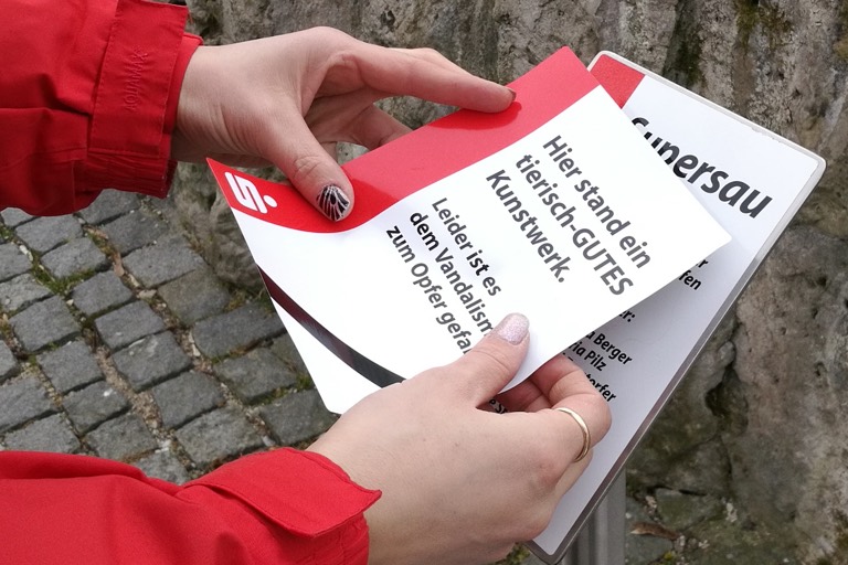 Bereits vor einigen Wochen musste seinen Worten zufolge die „Bayerische Berta“ in Vohburg abgebaut worden, nachdem sie sozusagen eine „klaffenden Wunde“ am Rücken erlitten hatte. Unbekannte waren wohl zu heftig auf dem Kunstwerk herumgeklettert oder -getrampelt. Dann hat es auch noch die „Supersau“ erwischt: Sie verlor im Faschingstrubel beide Ohren. Der Vohburger Stadtplatz, den nun keine schweinischen Kunstwerke mehr schmücken, ist somit wieder ein Stück kahler geworden. Wo vorher die tierischen Exponate standen, zeugen jetzt nur mehr zwei verbliebene Schilder von dem Vandalismus, dem sie zum Opfer gefallen sind.