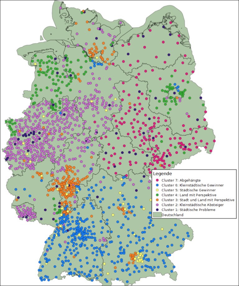 Dabei wurde anhand 34 verschiedener Indikatoren die „Zukunftsfähigkeit“ der 1554 deutschen Städte mit über 10 000 Einwohnern unter die Lupe genommen. Unter den Variablen waren demographische Faktoren und soziale Indikatoren sowie die wirtschaftliche Struktur.