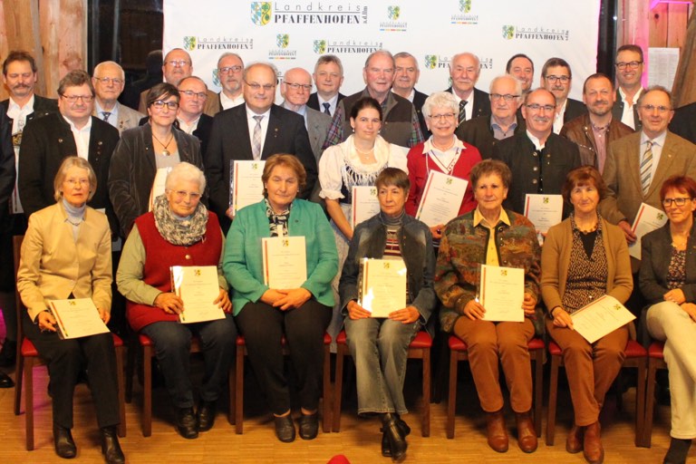 33 langjährige Vereinsfunktionäre sind vom Pfaffenhofener Landrat Martin Wolf (CSU) für ihr ehrenamtliches Engagement ausgezeichnet worden