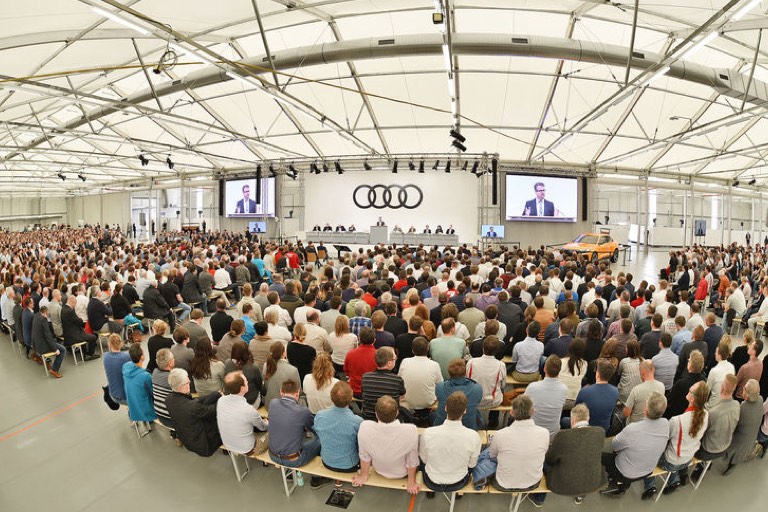 Insgesamt vier Mal im Jahr finden bei Audi Betriebsversammlungen statt, sie sind fester Bestandteil der jährlichen Terminplanung. Die Versammlungen dienen der umfassenden Information der Beschäftigten über die Tätigkeit des Betriebsrats und geben der Belegschaft Aufschluss über die Situation des Unternehmens.