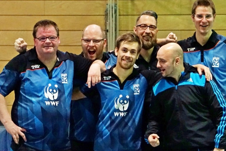 Im Parallelmatch fehlten Bolzer nach 2:1-Satzführung und 9:3 nur noch zwei Zähler zum Matchgewinn, doch sein Kontrahent wehrte sich, punktete fünf Mal in Serie und es wurde plötzlich wieder eng. Der MTV-Akteur blieb jedoch konzentriert, verwandelte seinen zweiten Matchball und Jubel brach los – der Klassenerhalt war damit gesichert!