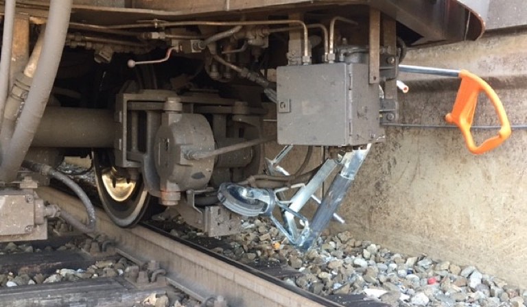 Die S-Bahn kam aber nicht mehr rechtzeitig zum Stehen und erfasste den Putzwagen. Dieser verklemmte sich kompliziert unter dem Triebfahrzeug zwischen der S-Bahn und den Gleisen, so dass die S-Bahn (S8 auf dem Weg zum Ostbahnhof) nicht mehr bewegt werden konnte (Foto).