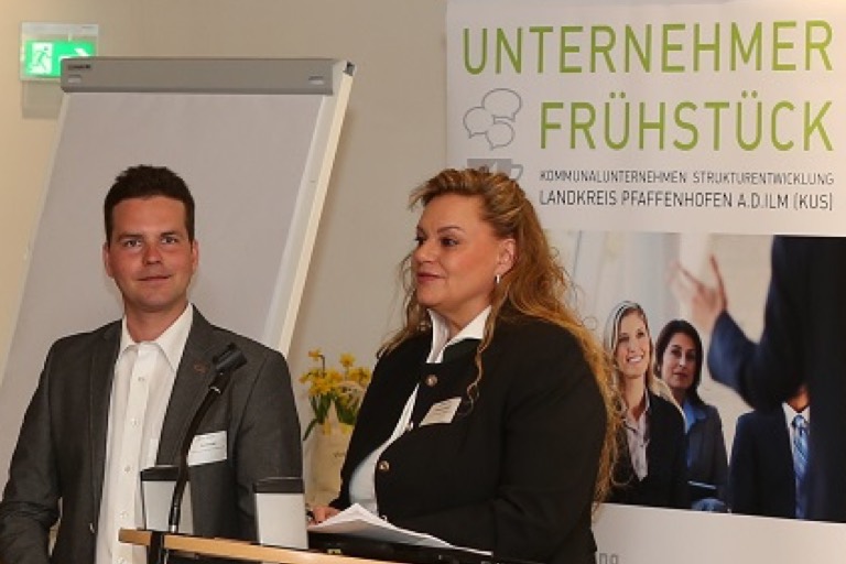 Wie Inklusion vorbildlich ins Unternehmen eingegliedert werden kann, ergänzte das Best-Practice-Beispiel: Petra Amenda von der „Alfred Amenda & Sohn Transport GmbH“ aus Hohenwart schilderte ihre Erfahrungen, einen jungen Menschen mit Inklusionshintergrund einzustellen. Über die Regens-Wagner-Stiftung erhielt sie den Praktikanten Andreas, der ebenfalls zum KUS-Unternehmerfrühstück gekommen war und sich in den Vortrag einbrachte. Durch einen unverschuldeten Unfall im Jahr 2007 hatte der damals 16-Jährige schwerste Kopfverletzungen erlitten.