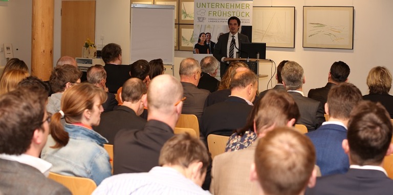 Zahlreiche Teilnehmer konnte KUS-Chef Johannes Hofner beim Unternehmerfrühstück im Hopfenmuseum Wolnzach begrüßen.
