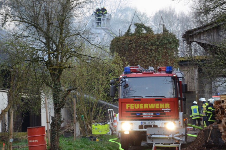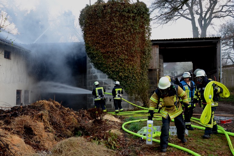 Landwirtschaftliches Gebäude mit Werkstatt in Brand – 100 Feuerwehrleute angerückt – Eine Person verletzt – Ursache noch unklar, Kripo übernimmt Ermittlungen