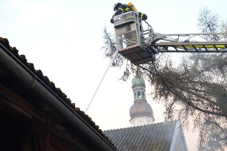 Nach den Worten von Seemüller verhinderten eine Beton-Decke und eine Zwischenmauer ein noch schnelleres Ausbreiten der Flammen und damit Schlimmeres. Trotzdem sei die Lage „phasenweise kritisch“ gewesen. In der in dem betroffenen Gebäude-Bereich untergebrachten Werkstätte befanden sich seinen Angaben zufolge unter anderem Gasflaschen, Farben, Lacke sowie weitere brennbare Stoffe. Mit kühlendem Wasser und Löschschaum bekamen die Floriansjünger die Situation aber bald in den Griff.