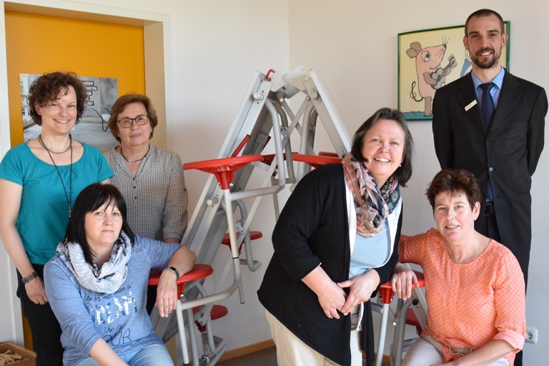 (ty) An einem neuen mobilen Mittagstisch können jetzt die Schüler der Grundschule Ilmmünster Platz nehmen. Möglich gemacht hat die Anschaffung des praktischen Klappmöbels eine Spende der Sparkasse Pfaffenhofen über 1000 Euro. Damit konnte der rund 1400 Euro teure Tisch letztlich finanziert werden. Vize-Bürgermeisterin Brigitte Wallner als Vertreterin der Gemeinde und das Team der offenen Ganztagesbetreuung an der Schule bedankten sich für die Finanzspritze bei Sparkassen-Geschäftsstellenleiter Andreas Hübel. Auf dem Foto (oben), von links: Brigitte Wallner, Ewa Pater, Roswitha Hopper, Miryam Häusler, Angelika Krüger und Andreas Hübel. (Foto: Haslinger)