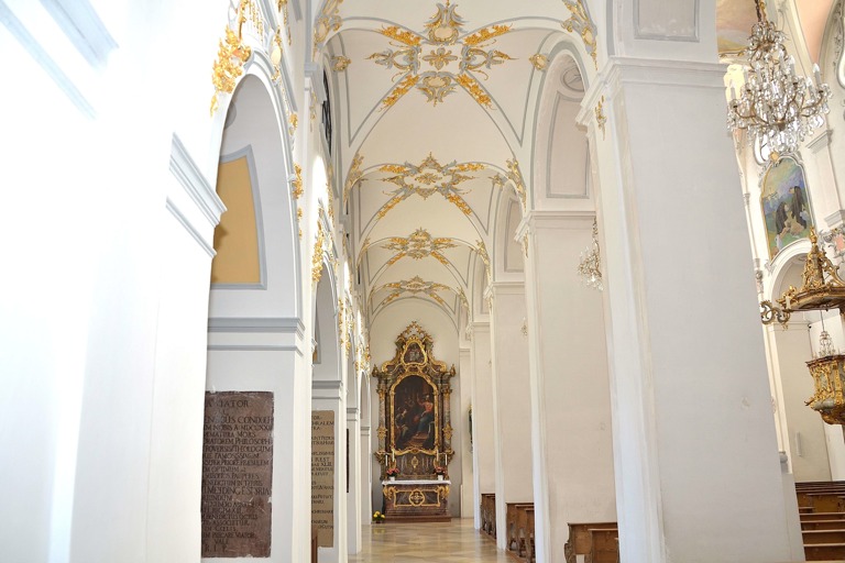 Einen "großen Brocken" nennt Pater Lukas Wirth, der Cellerar des Klosters Scheyern, die kommende Restaurierung des Hauptschiffes in der Basilika, die einhergeht mit einer Gesamtrenovierung der mit exakt 2526 Pfeifen bestückten Orgel . Bereits seit dem Jahr 2010 sind die Fachleute des Klosters mit den erhaltenden Arbeiten beschäftigt. Derzeit ist Kirchenmalermeister und Restaurator Markus Ullrich damit beschäftigt, das rechte Seitenschiff wieder in altem Glanz erstrahlen zu lassen. Ihm zur Seite stehen dabei neben dem Maler und Lackierer Lorenz Grünberger auch Frater Wunibald und vorübergehend die italienische Praktikantin Silvia Buzzacarin.