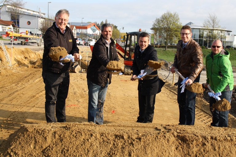 Zum symbolischen Spatenstich trafen sich jetzt Vertreter des Staatlichen Bauamts und der beteiligten Firmen mit Bürgermeister Thomas Herker (SPD). Wie der Rathauschef erläuterte, schafft die Stadt hier Ersatz für den ehemaligen, sehr beengten Recyclinghof am alten Bauhof-Areal, das jetzt Teil des neuen Bürgerparks ist. Während der neue Wertstoffhof nach Angaben der Stadtverwaltung im kommenden Jahr seinen Betrieb aufnimmt, soll die neue Fahrspur für Rechtsabbieger an der B 13 bereits rechtzeig zur Gartenschau – also im Mai – fertig werden.
