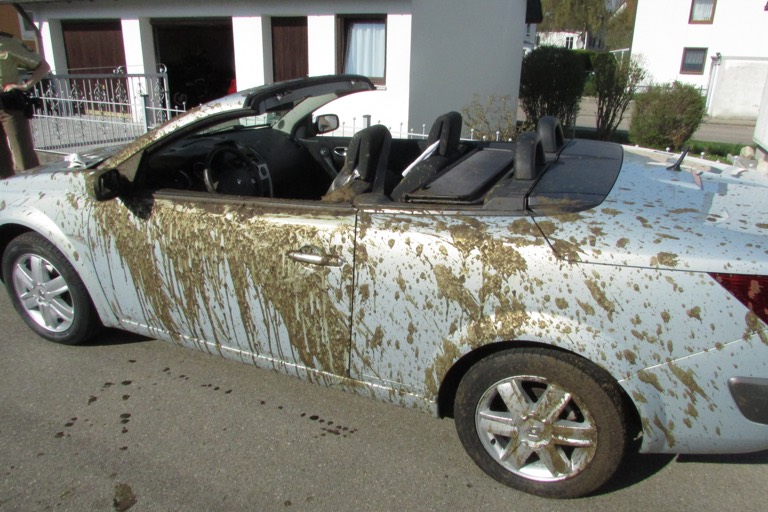 Ekliger Zwischenfall im Landkreis Dachau: Volle Ladung schwappte ins Auto und auf die beiden Insassen