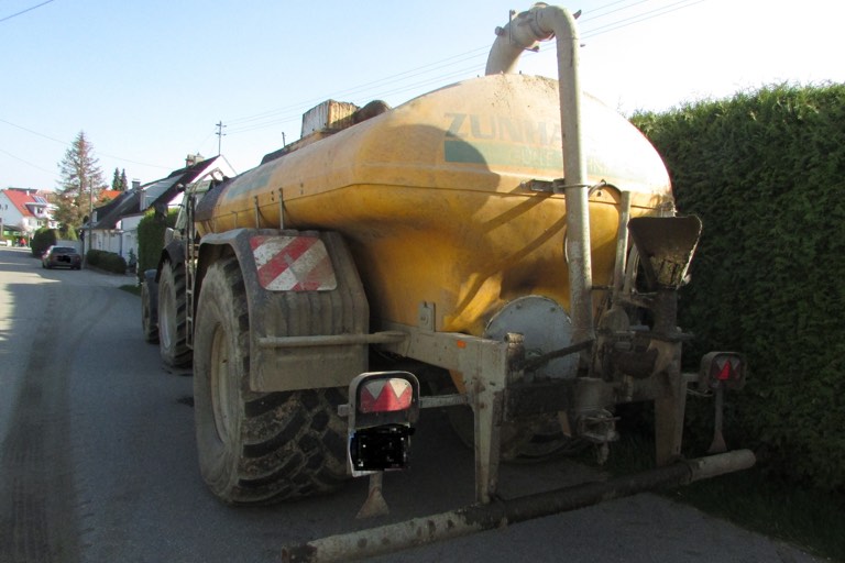 (ty) Ein Landwirt aus Altomünster wollte am Samstagnachmittag Gülle auf eine landwirtschaftliche Fläche ausbringen. Er war dazu mit seinem Traktor unterwegs, das Güllefass hatte er im Schlepptau. Der Bauer musste dann in der Halmsrieder Straße wegen eines am Fahrbahnrand geparkten Pkw mit seinem Gespann einen kurzen Schwenker machen, „wodurch die Gülle in heftige Bewegung kam“, wie die Polizei berichtet. Und da die Gülle nicht ordnungsgemäß gesichert war, schwappte sie über. Mit ekelhaften Folgen.