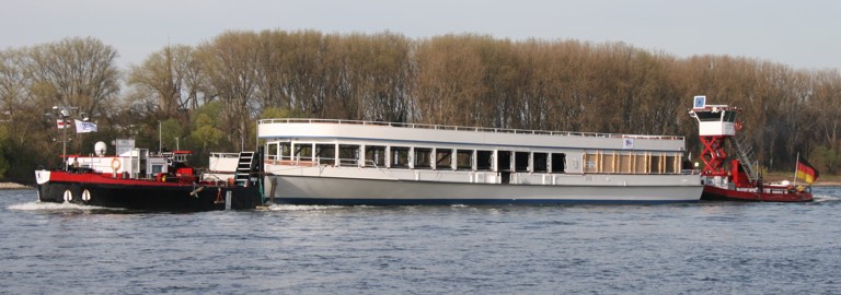 Die „MS Utting“ im Schubverband auf dem Rhein.