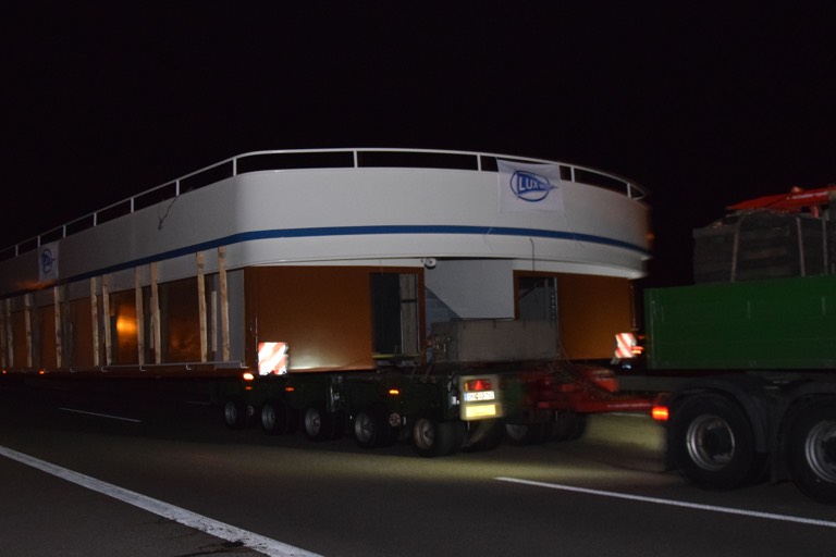 (ty/zel) Das Aufsehen erregende Vorhaben begann gestern Abend in Roth. Von der Lux-Werft in Mondorf am Rhein, wo es gebaut worden ist, war das Schiff über den Main-Donau-Kanal ins Mittelfränkische gelangt. Dort wurde es sozusagen in zwei riesige Teile zerlegt. Denn an ihr Ziel – Inning am Ammersee – wird die „MS Utting“ letztlich per Schwertransport gefahren.