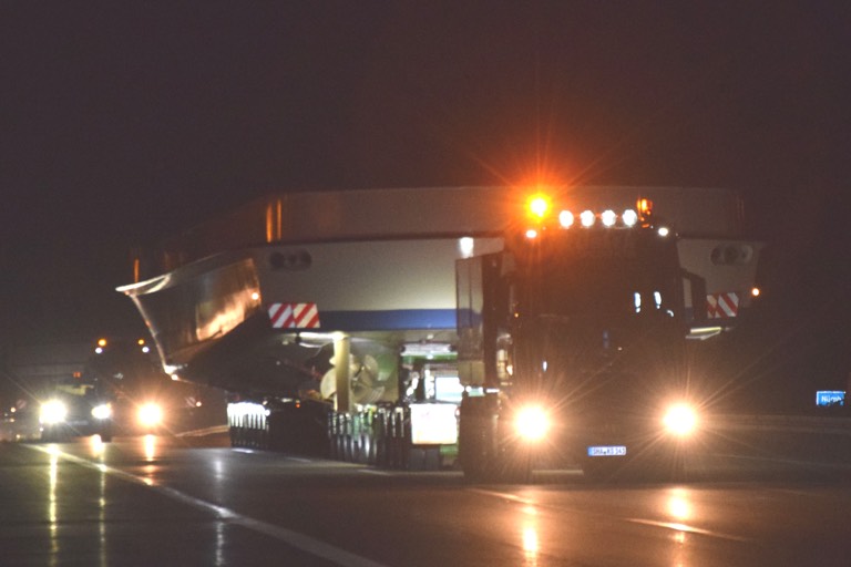 In der vergangenen Nacht führte der Weg auf der Straße bereits von Roth auf die A9 sowie auf dieser bis zu einem Parkplatz nahe dem Autobahnkreuz Neufahrn. Ab heute Abend, 20 Uhr, geht es weiter auf der A 9 sowie dann über die A 99 und die A 96 sowie schließlich bis nach Inning am Ammersee. Auf dieser Tour stehen der tonnenschweren Lieferung zwei Tunnel-Durchfahrten bevor, bei denen es ziemlich eng zur Sache gehen wird.