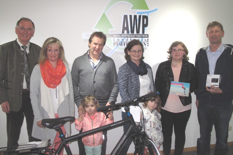 (ty) 662 Teilnehmer nahmen am Quiz des Abfallwirtschaftsbetriebs Pfaffenhofen (AWP) auf der Wolnzacher Messe teil. Vize-Landrat Anton Westner (CSU) und AWP-Werkleiterin Elke Müller überreichten jetzt die Preise an die Gewinner (Foto oben). Den ersten Preis, ein Fahrrad, erhielt Erwin Graßl aus Rohrbach. Den zweiten Preis, einen Reisegutschein im Wert von 400 Euro, gewann Karin Hammerl aus Wolnzach. Der dritte Preis, eine Digitalkamera, ging an Heinrich Binzer aus Ilmmünster.