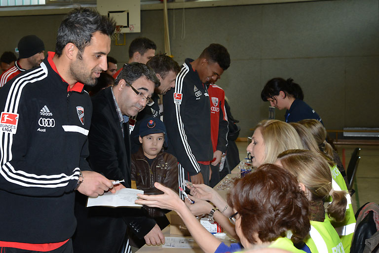 (ty) Ganz zufrieden ist Reinhard Büchl, der Präsident des Lions Club, nicht mit dem Zuspruch für die Typisierungsaktion für Michael Schels in der Turnhalle des Scheiner-Gymnasiums. Bis Mittag waren es 400 Ingolstädter, die sich für den an Leukämie erkrankten Schulrat Michael Schels haben typisieren lassen. „Ein bisschen mehr hätte ich mich schon erwartet“, so Büchl, der um 12.30 Uhr immerhin die Profikicker des FC Ingolstadt 04 begrüßen durfte.