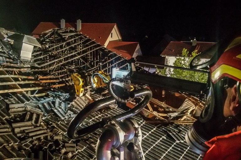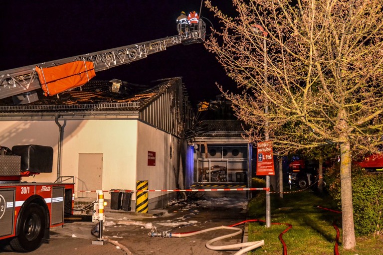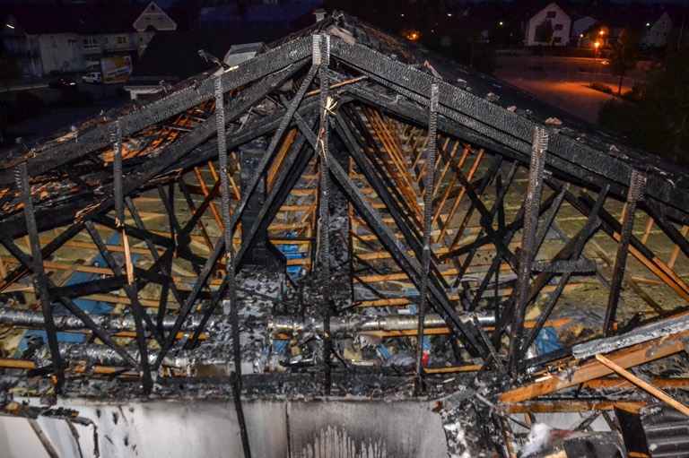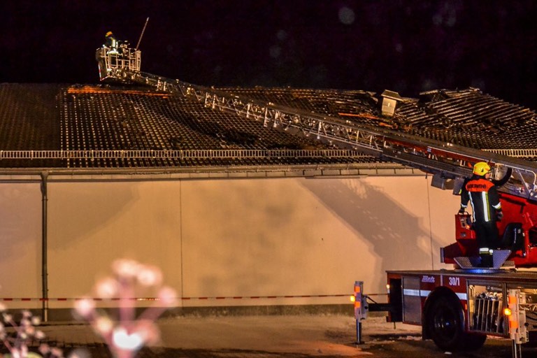 Insbesondere sei das Dach des Gebäudes von den Flammen erfasst worden; Teile der Konstruktion stürzten ein. Der durch das Feuer angerichtete Schaden wird in einer ersten Schätzung auf eine Größenordnung um 200 000 Euro beziffert.