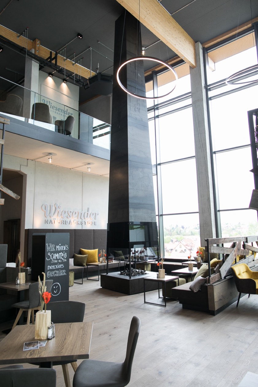 Neu im Sortiment und laut Wiesender einzigartig in Pfaffenhofen ist jetzt der gute alte Filterkaffee, der Tasse für Tasse frisch gemahlen und gebrüht wird. Geradeaus lädt eine Lounge-Area zum Verweilen ein und ein offener Kamin umhüllt die Gäste bei kalten Temperaturen mit wohliger Wärme. Die Bestuhlung erscheint in einem hellgrauen beziehungsweise ockergelben Retro-Design und erinnert an die Innenausstattung der neuen Naturbackstube mit Café am Hauptplatz (ehemaliges Café Herb). Aber Pfaffenhofen hat jetzt nicht nur eine neue, moderne und klassische Bäckerei und Konditorei, die Besucher erwartet dort auch ein Lehrpfad, bei dem man alles über die Entstehung guten Brotes erfährt.