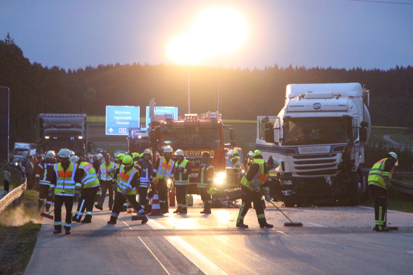 Der 66-jährige Pkw-Lenker und ein Mitfahrer wurden leicht verletzt. Der Beifahrer wurde schwer verletzt, er musste mit dem Rettungshubschrauber in eine Klinik geflogen werden. Der Lkw-Fahrer blieb unversehrt. Auf der Autobahn kam es bis gegen 23 Uhr zu Behinderungen, teilweise war die Fahrbahn in Richtung Regensburg komplett gesperrt. Der Sachschaden wird auf insgesamt zirka 225 000 Euro beziffert.