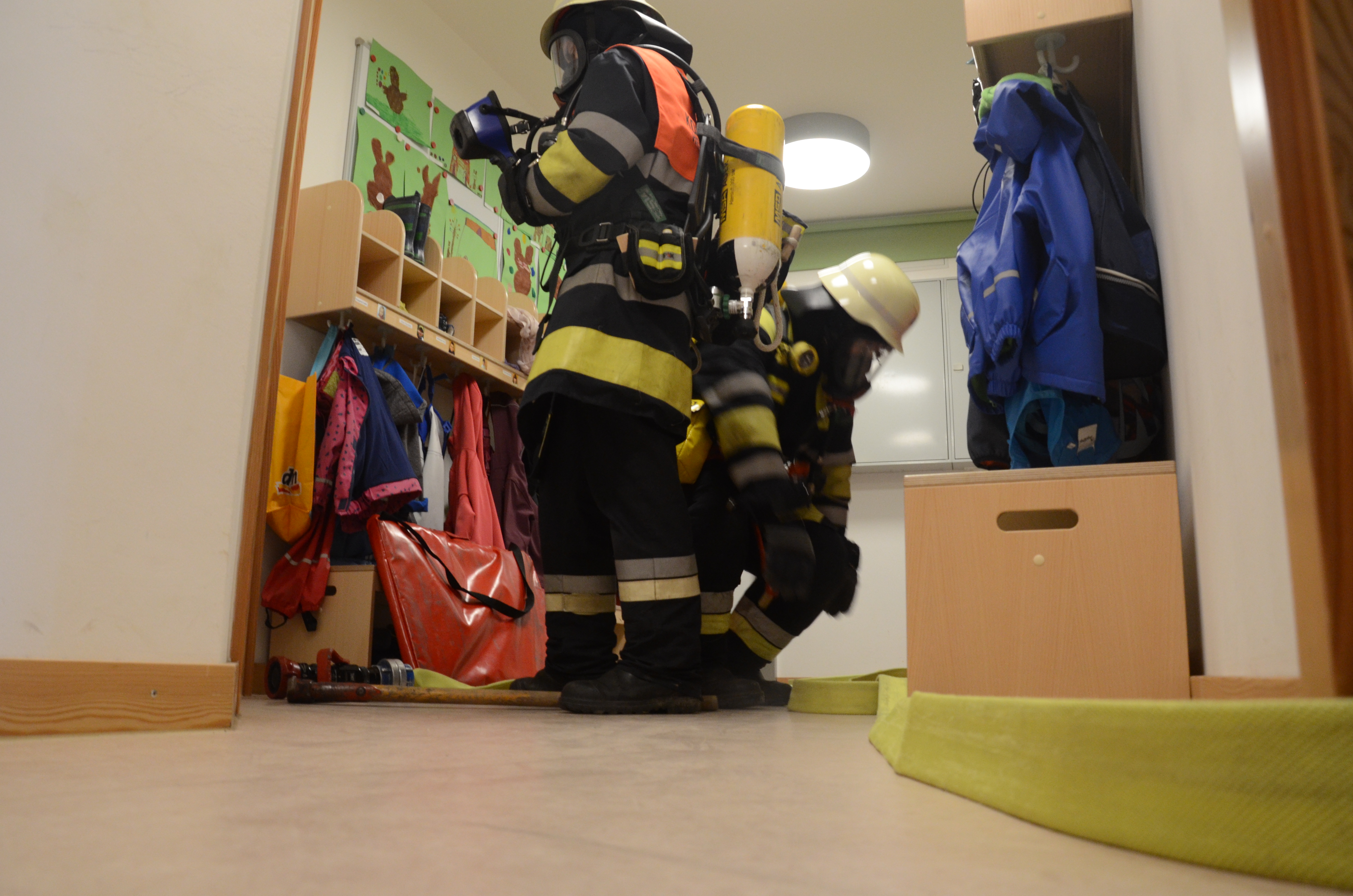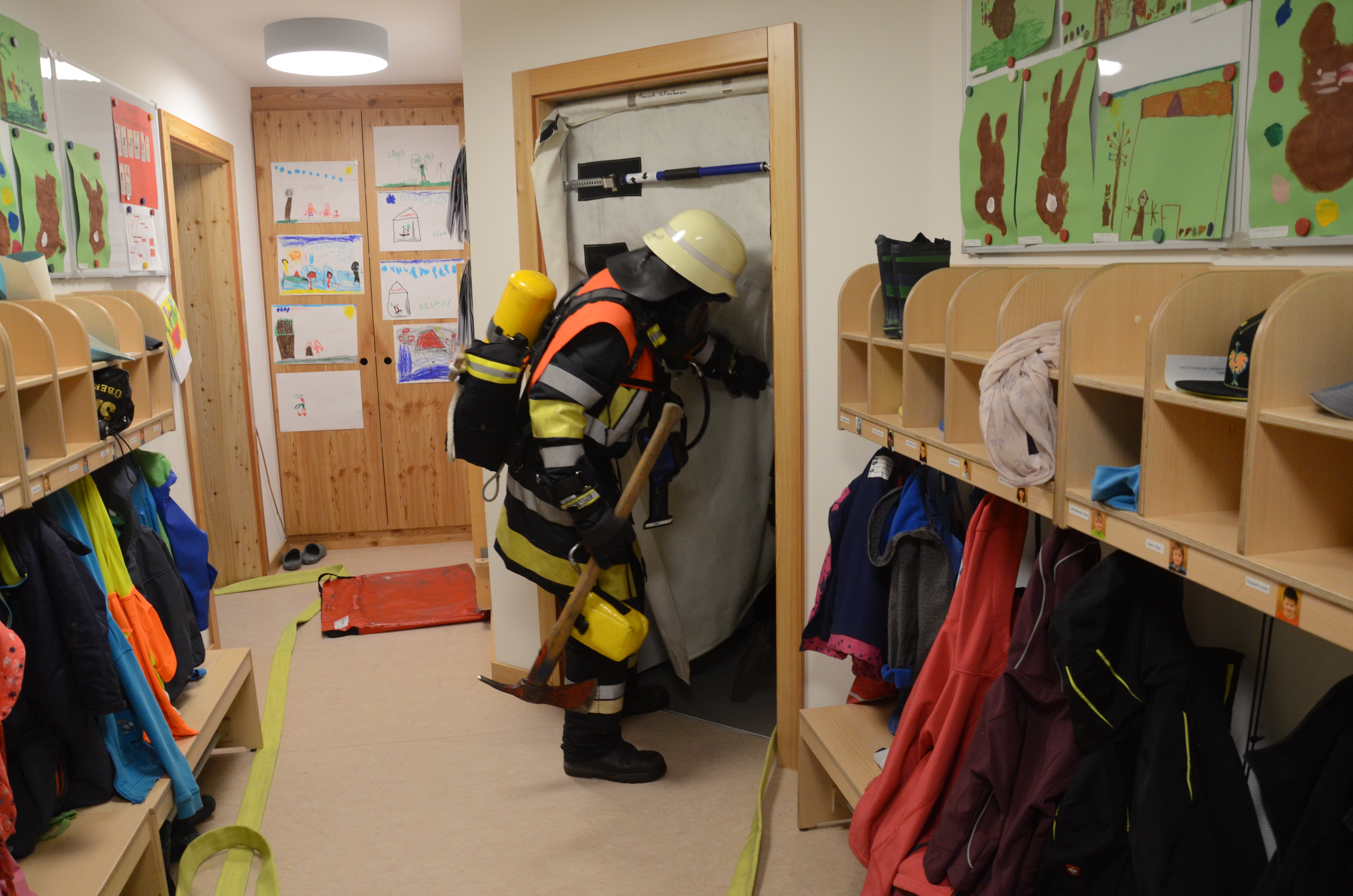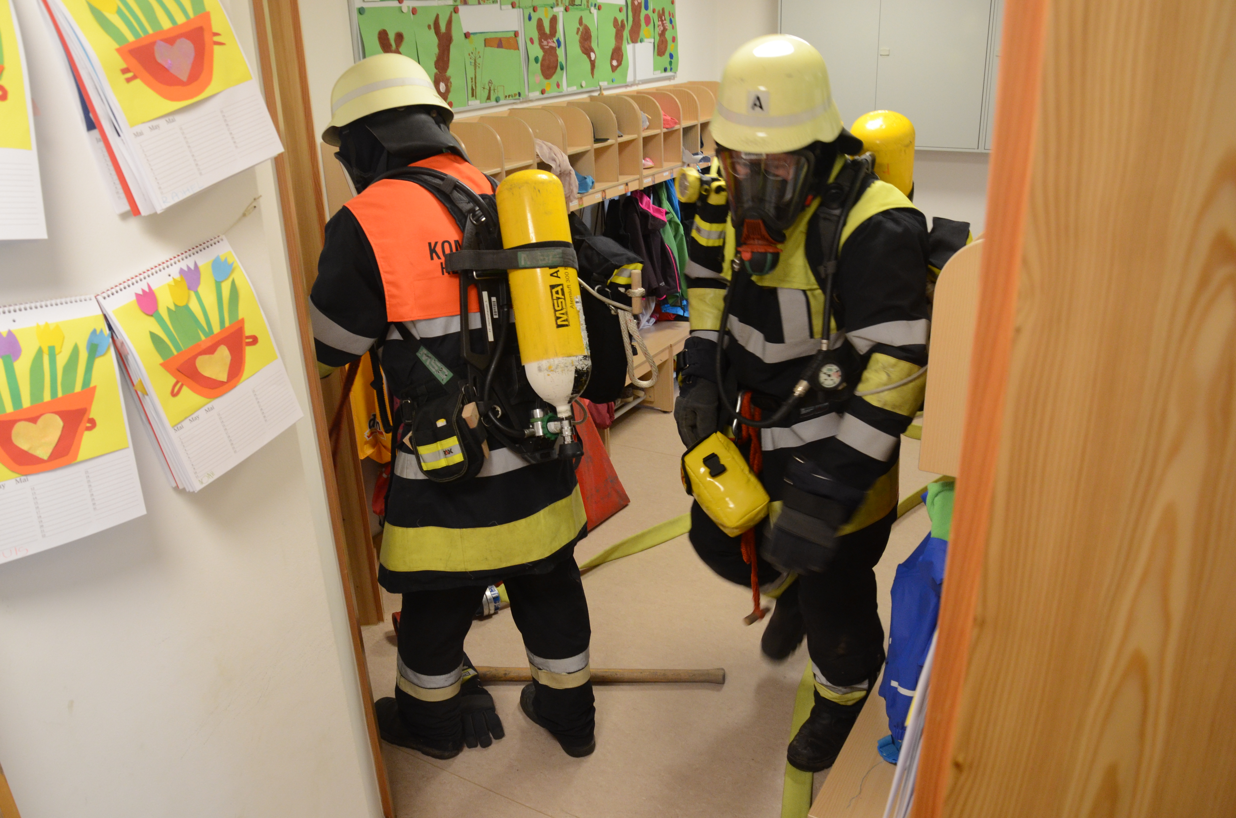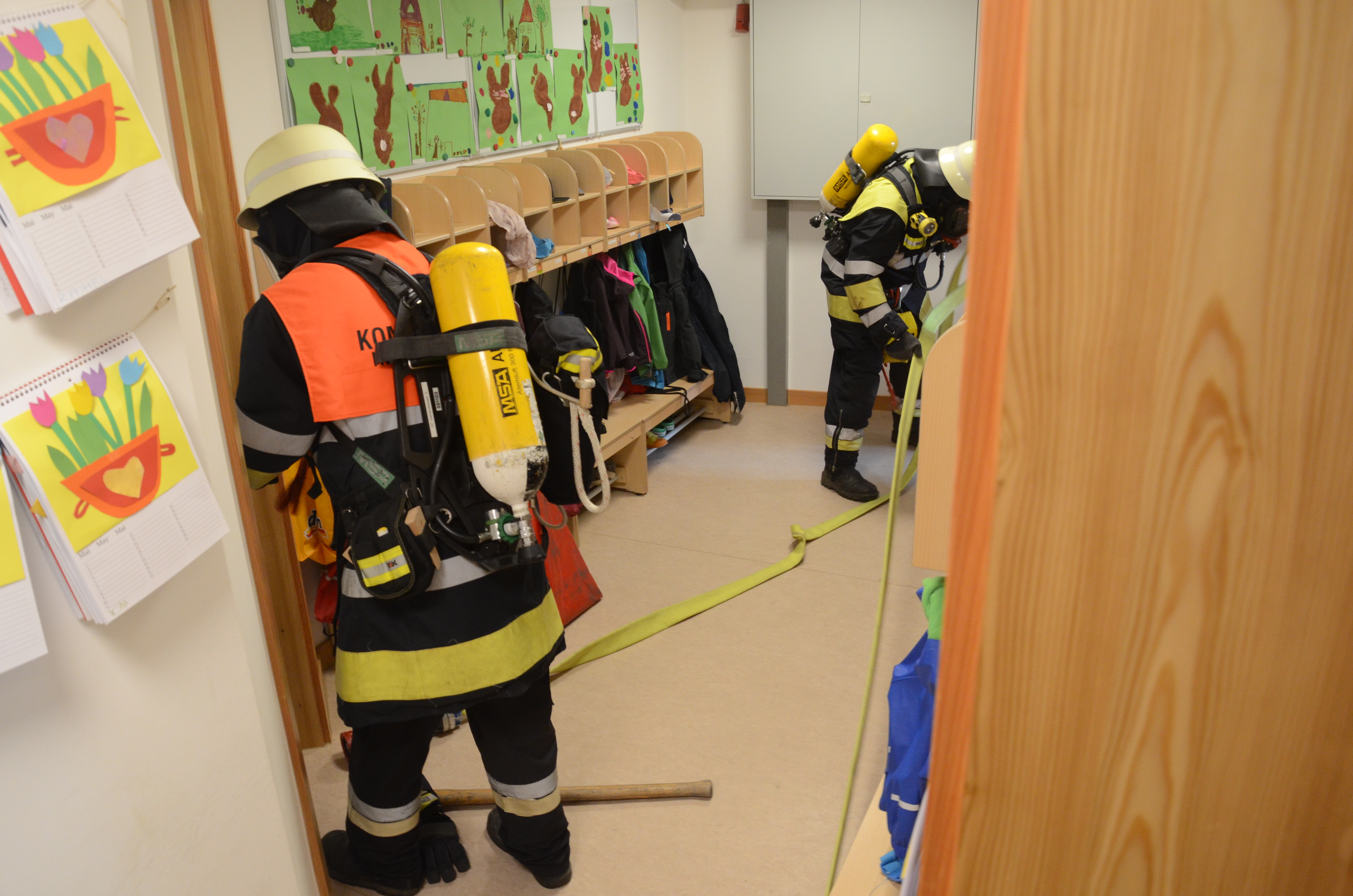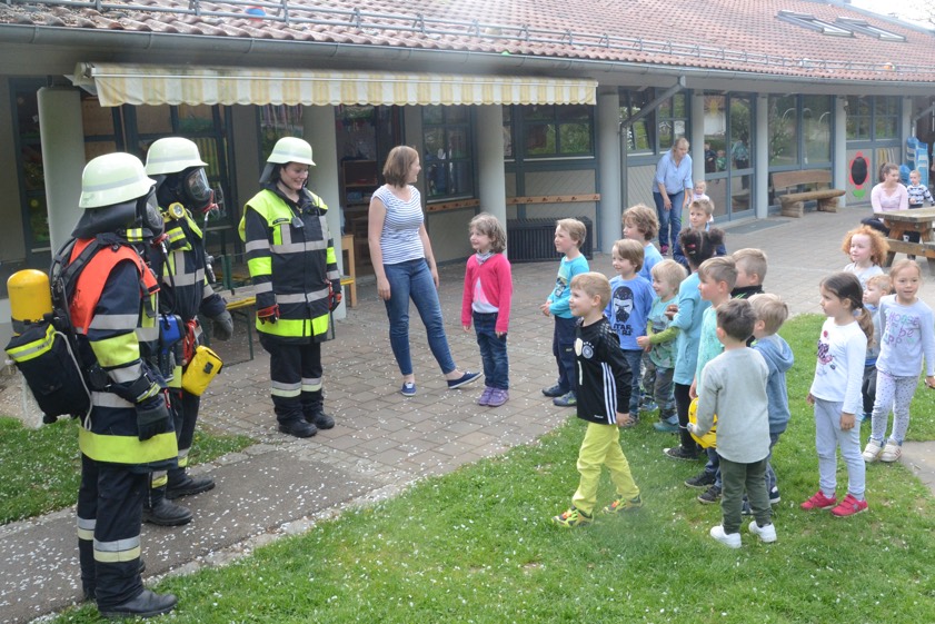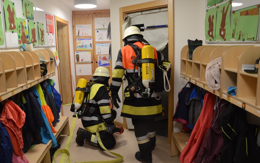 Hintergrund der Übung war es nach den Worten von Vize-Kommandant Fabian Zimmermann zum einen, dass im Ernstfall die Evakuierung einigermaßen routiniert vonstatten geht. Dass die Kommunikation richtig abläuft und dass jeder weiß, was zu tun ist. Für die Feuerwehrlehr ist es zudem wichtig, dass sie die so genannten Sonderobjekte in der Gemeinde – wie eben den Kindergarten – und deren Räumlichkeiten kennen, damit sie im Notfall möglichst schnell agieren können und keine bösen Überraschungen erleben.