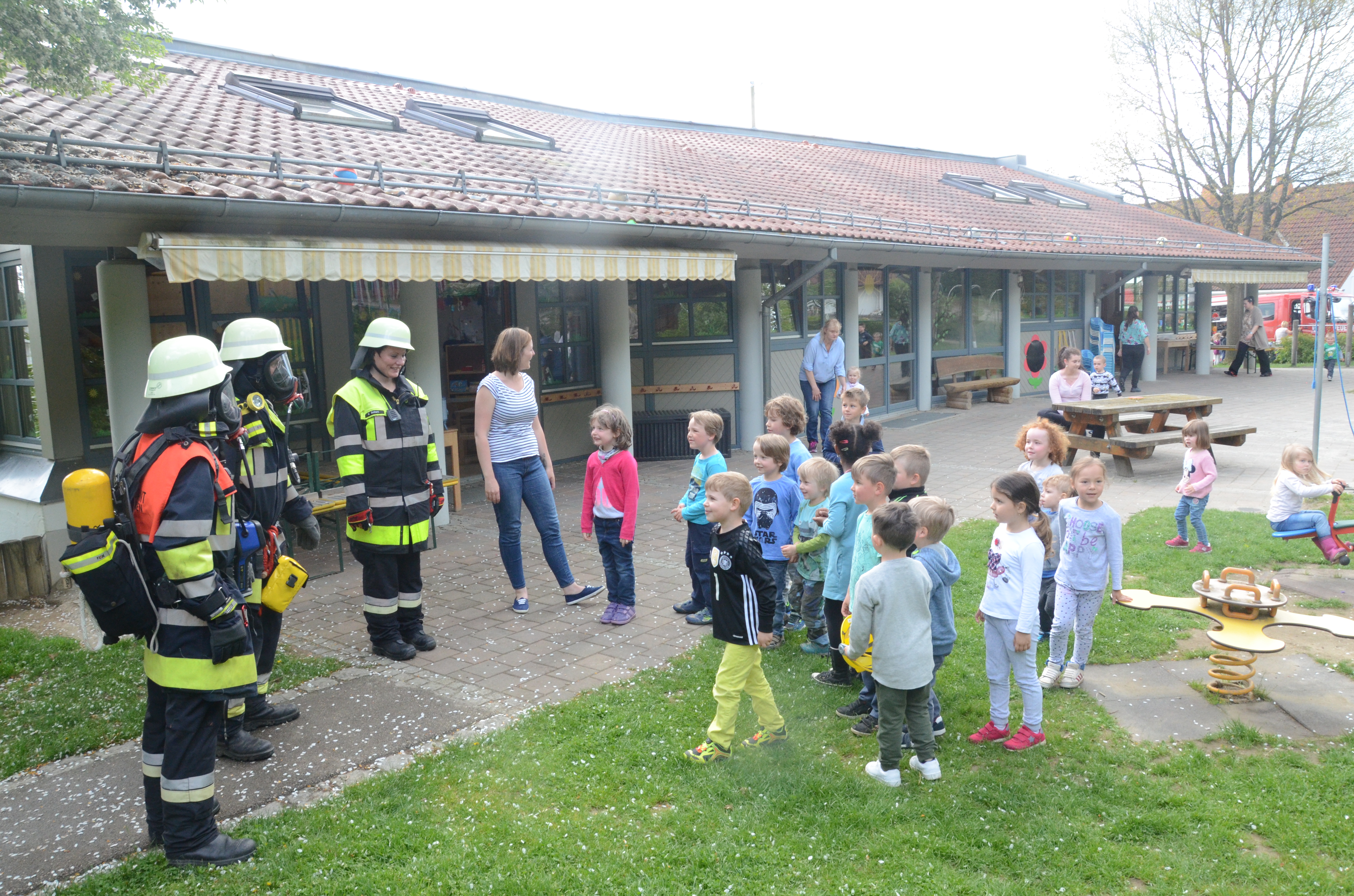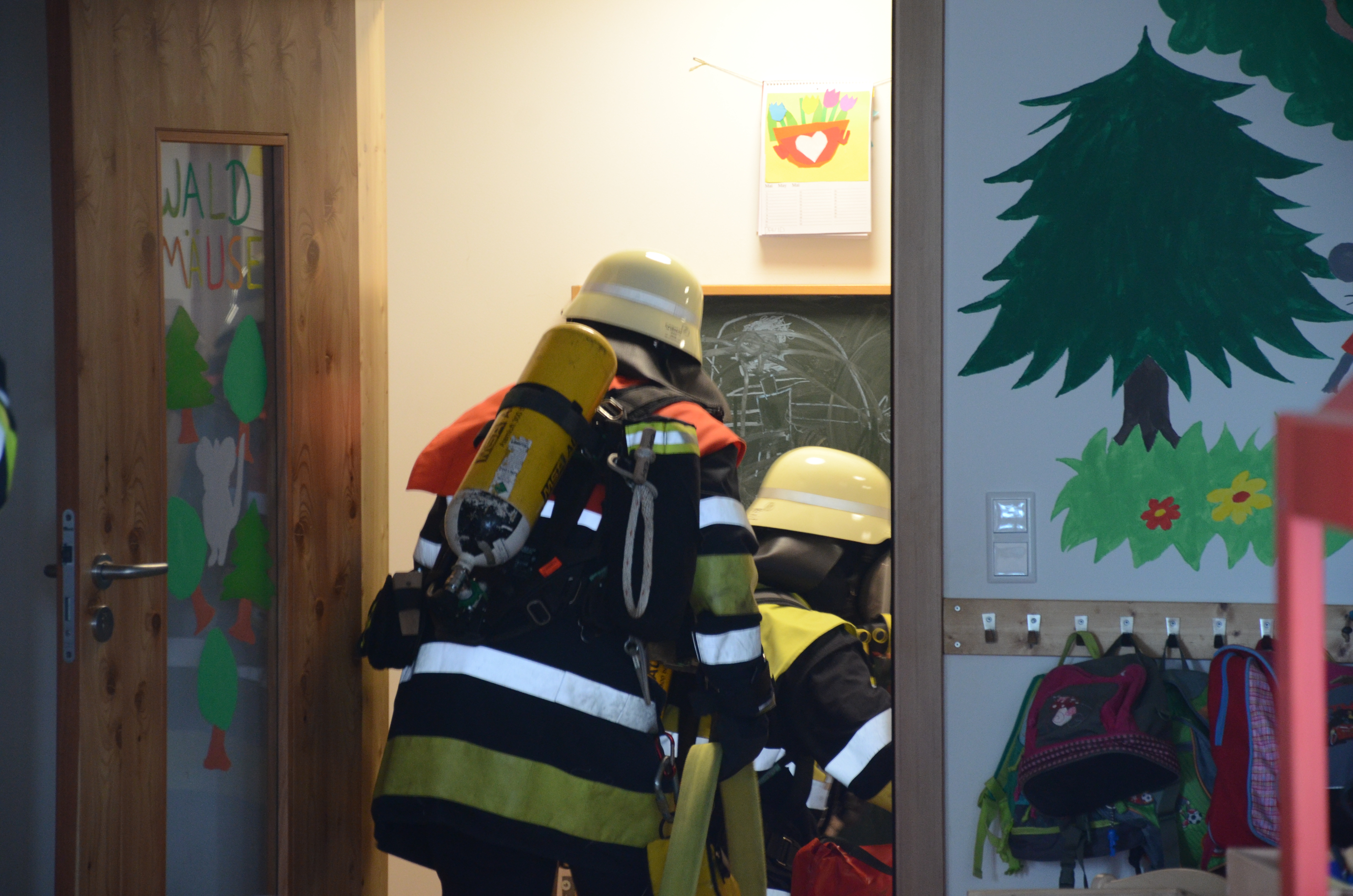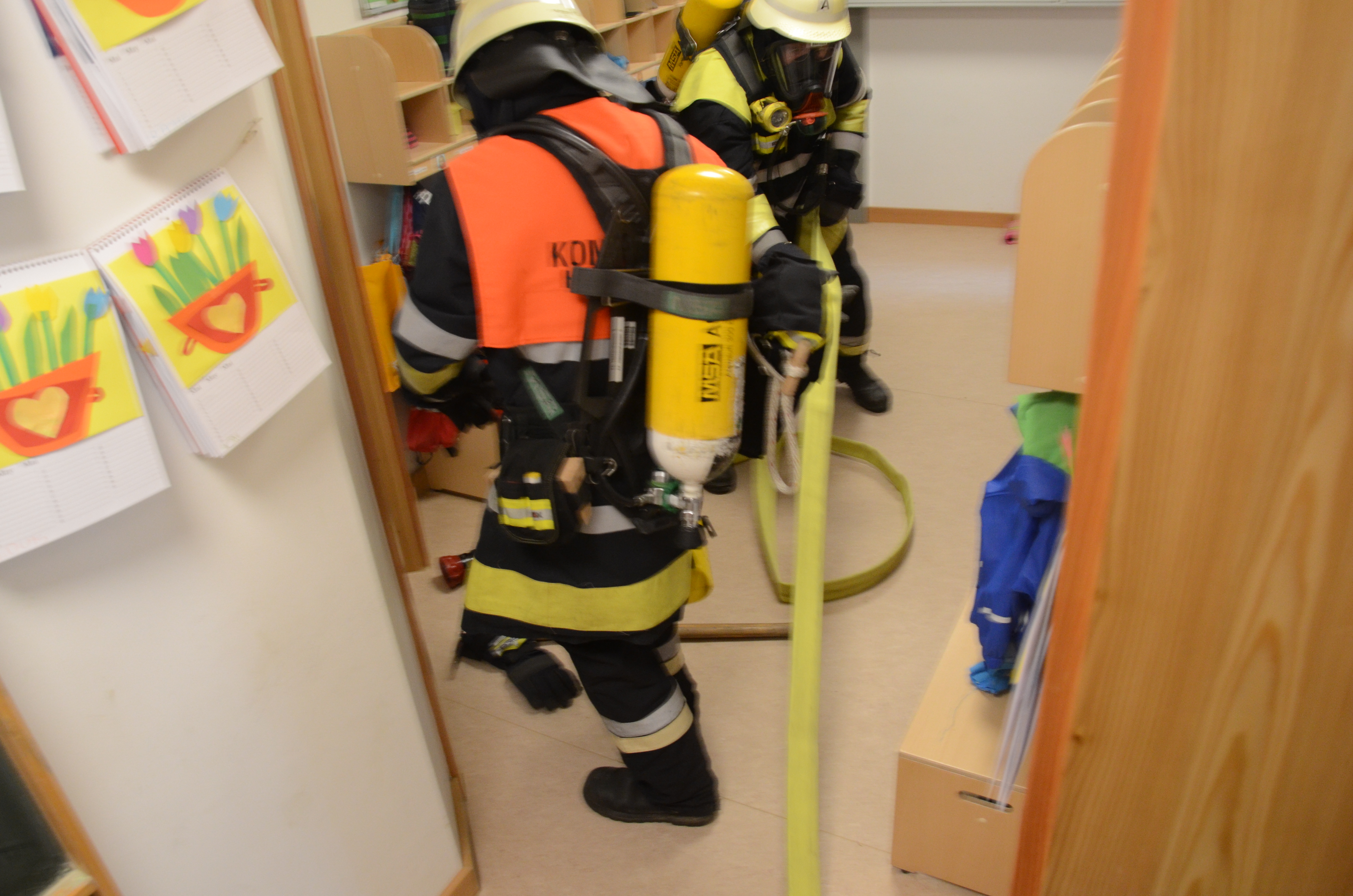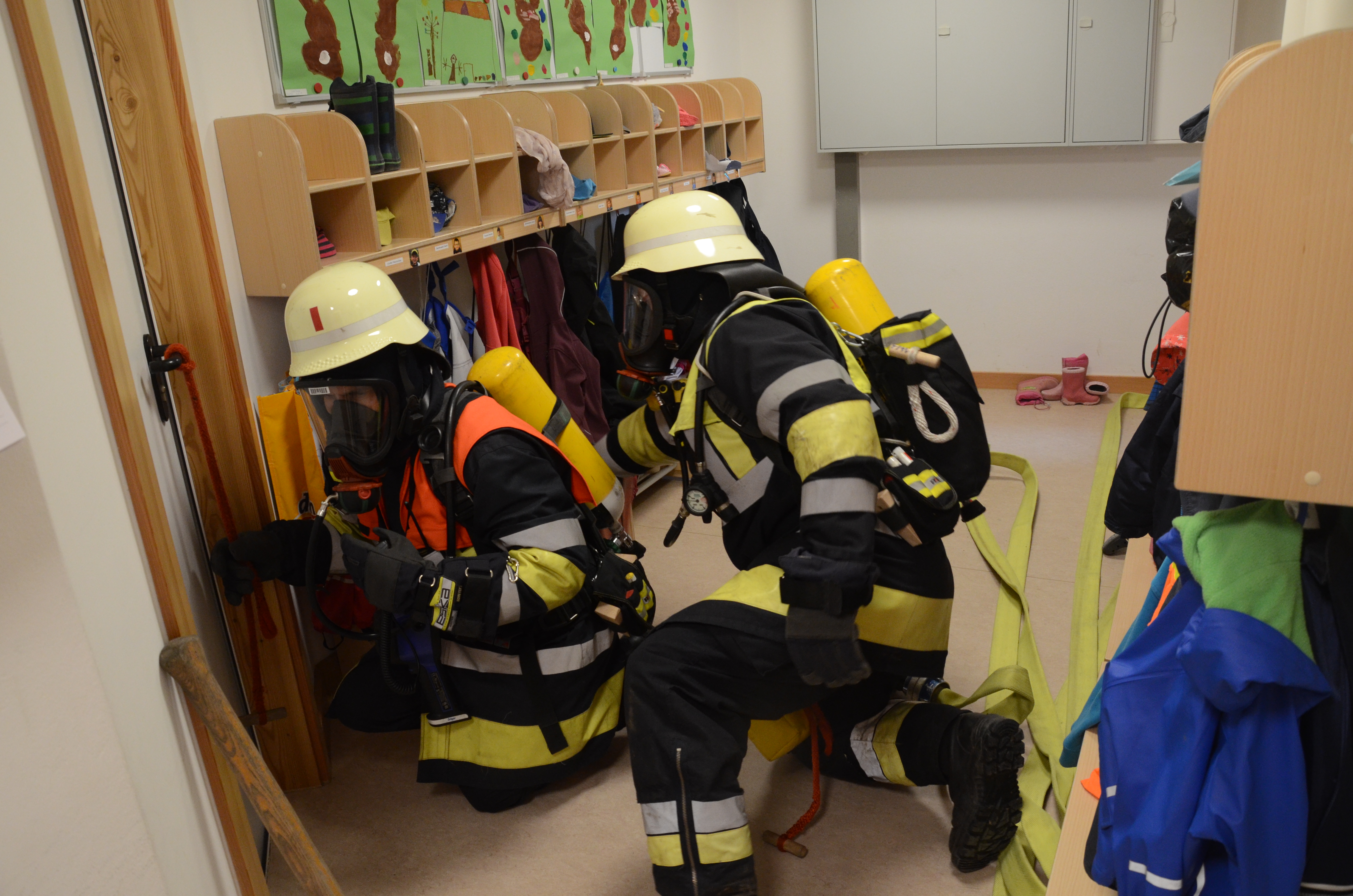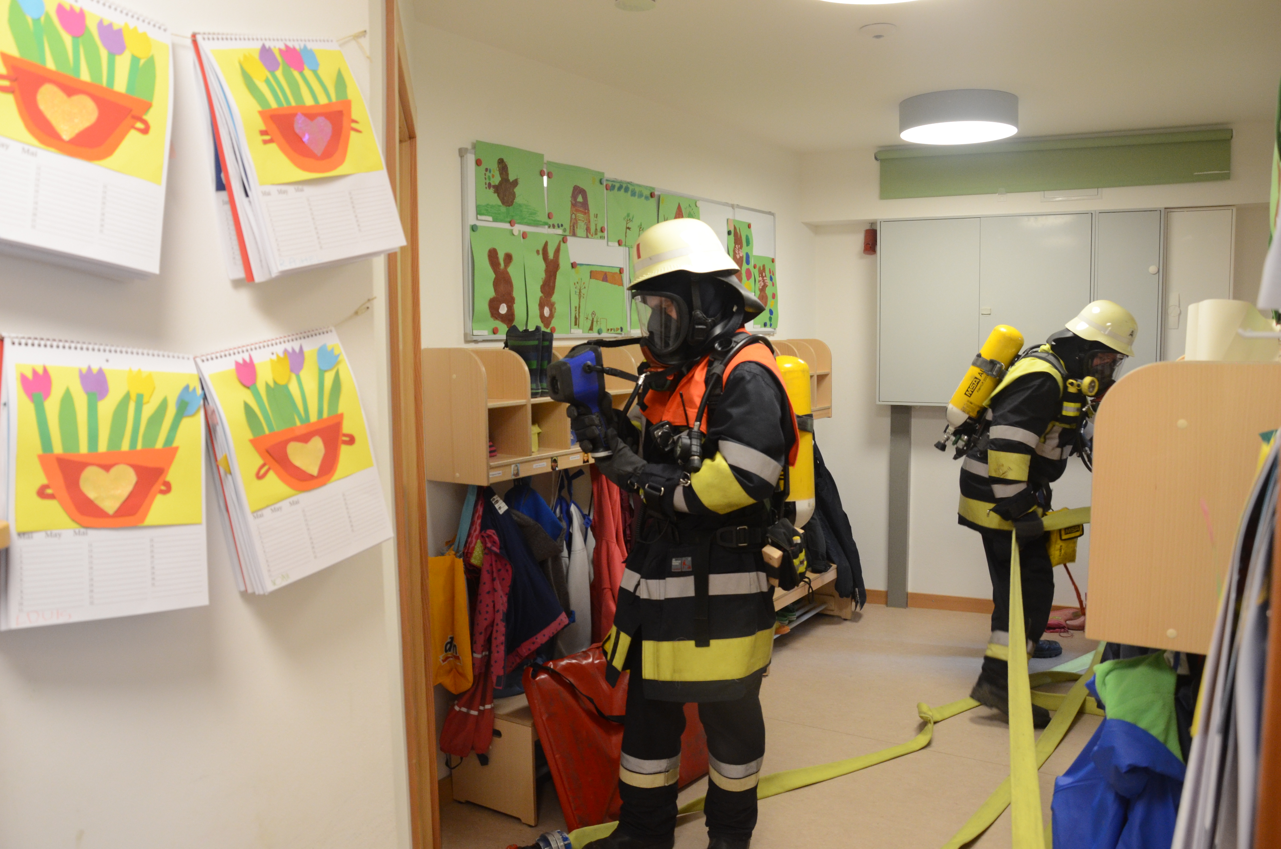 Hintergrund der Übung war es nach den Worten von Vize-Kommandant Fabian Zimmermann zum einen, dass im Ernstfall die Evakuierung einigermaßen routiniert vonstatten geht. Dass die Kommunikation richtig abläuft und dass jeder weiß, was zu tun ist. Für die Feuerwehrlehr ist es zudem wichtig, dass sie die so genannten Sonderobjekte in der Gemeinde – wie eben den Kindergarten – und deren Räumlichkeiten kennen, damit sie im Notfall möglichst schnell agieren können und keine bösen Überraschungen erleben.