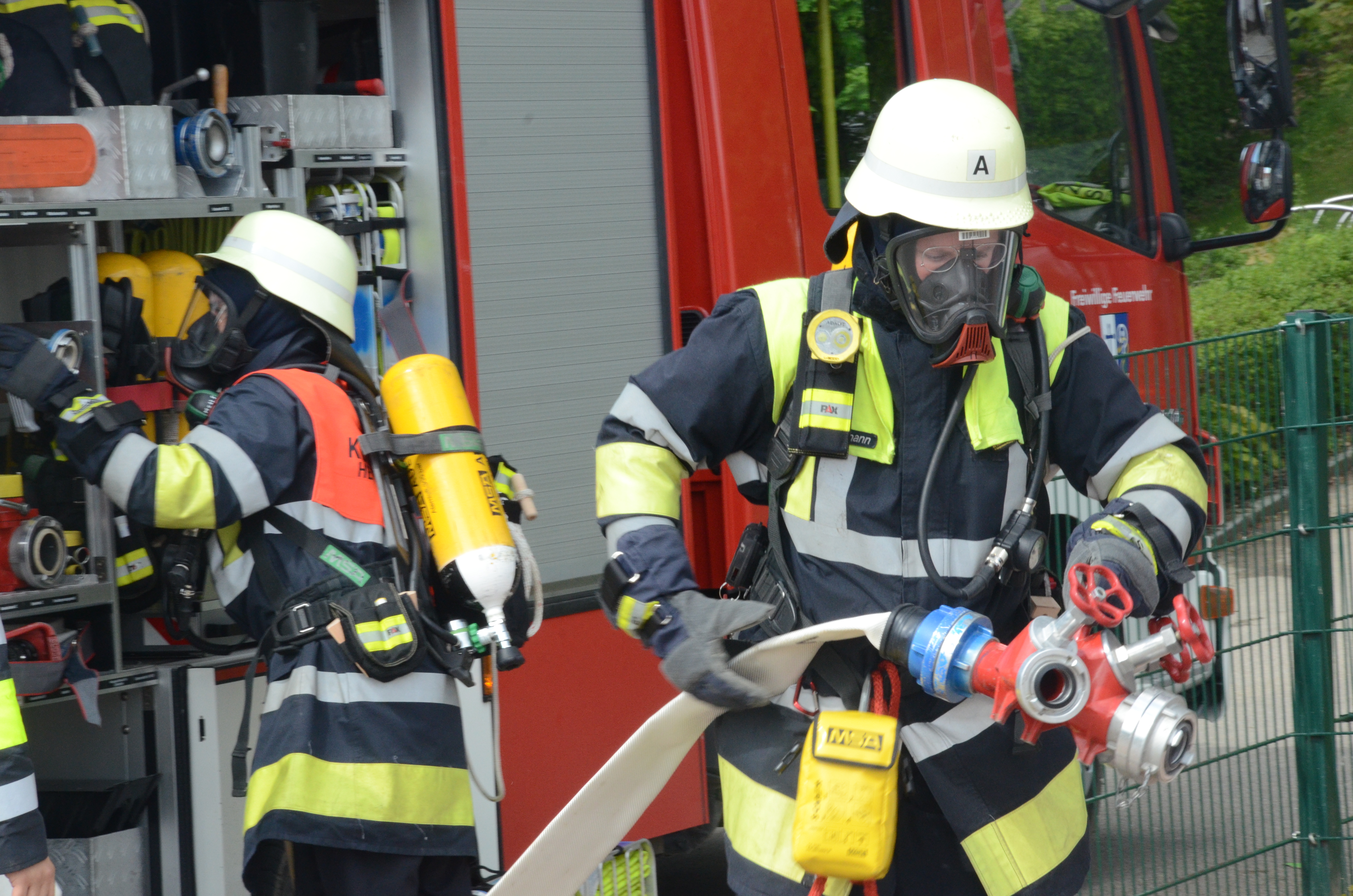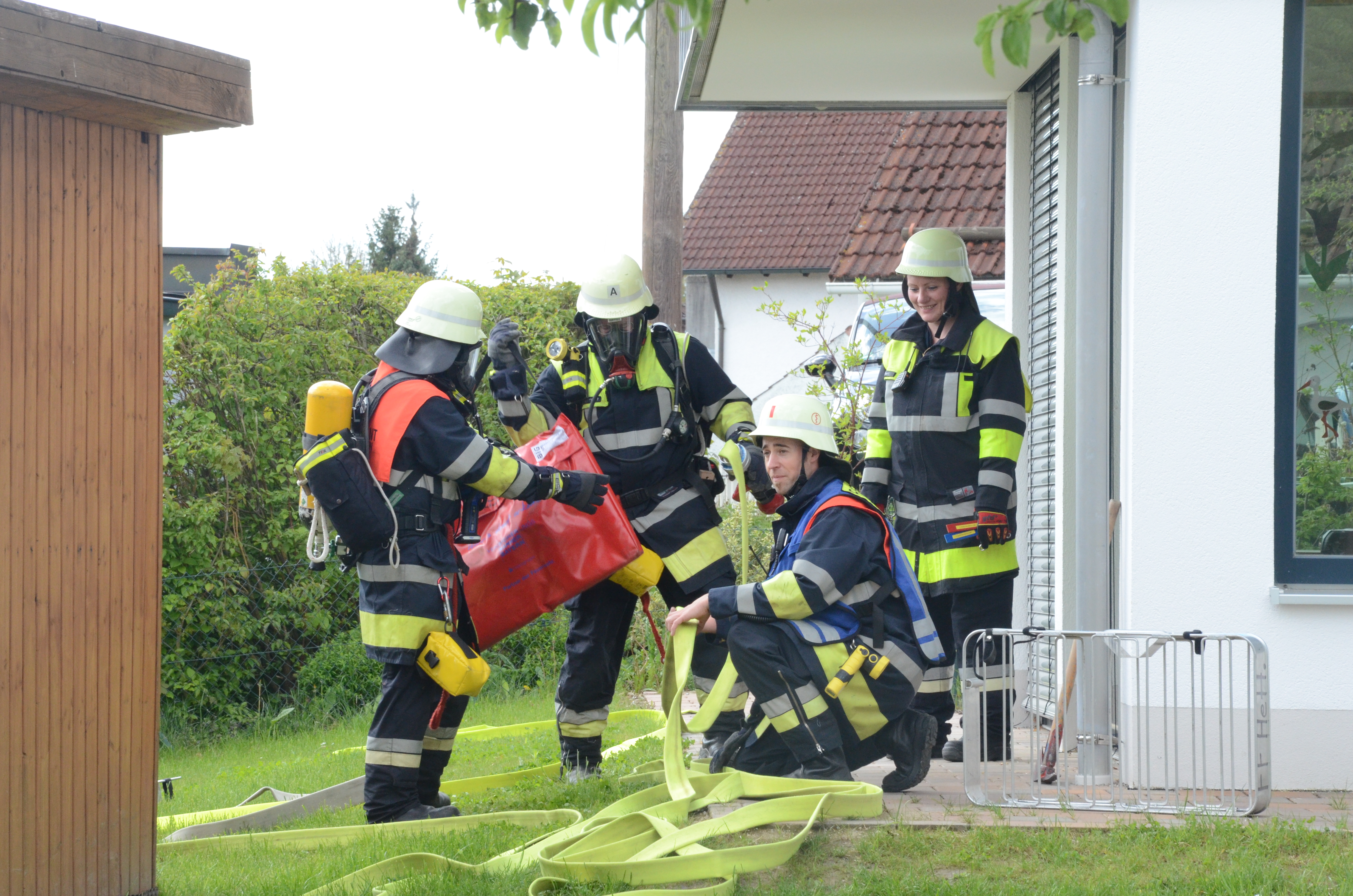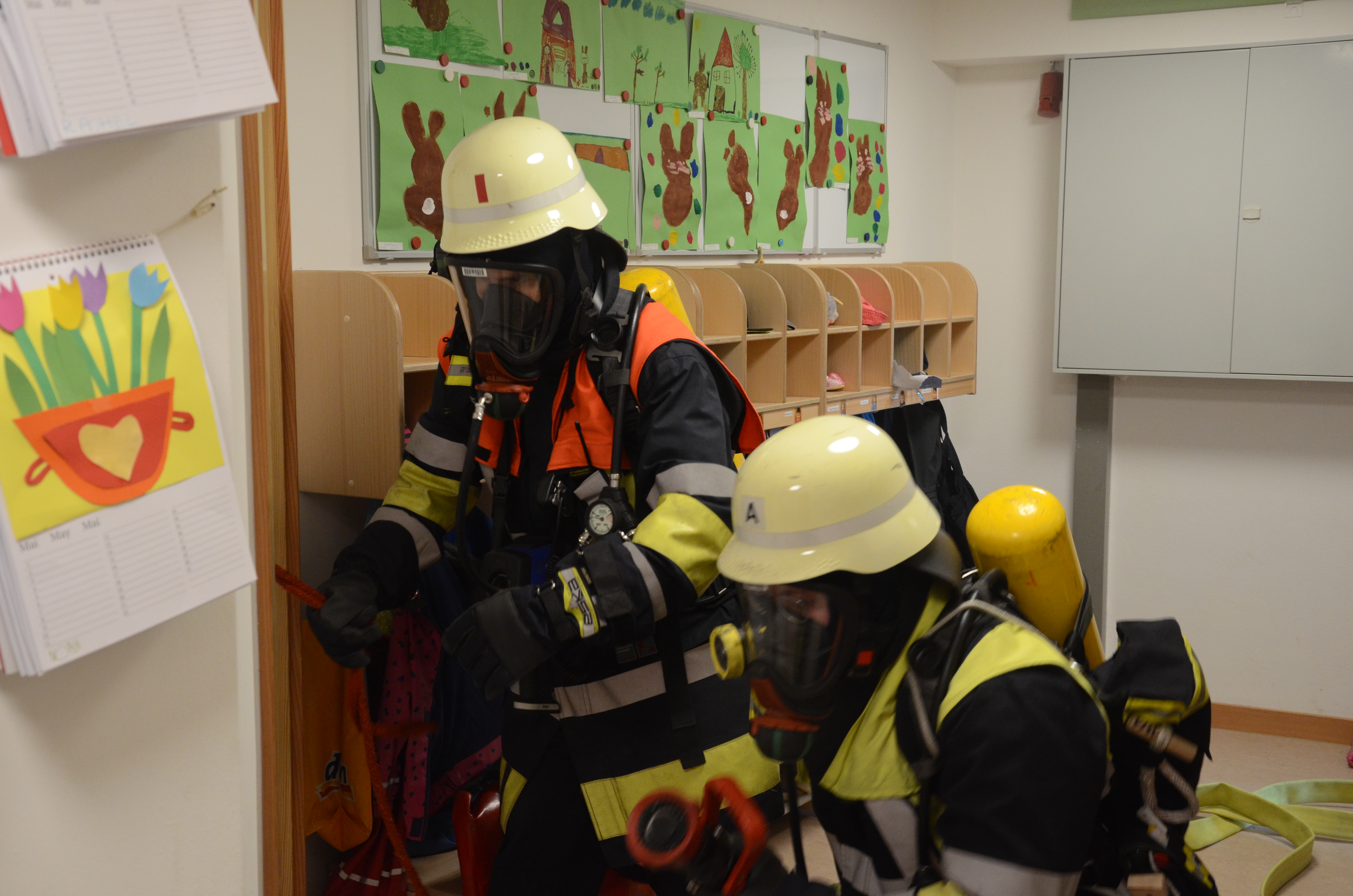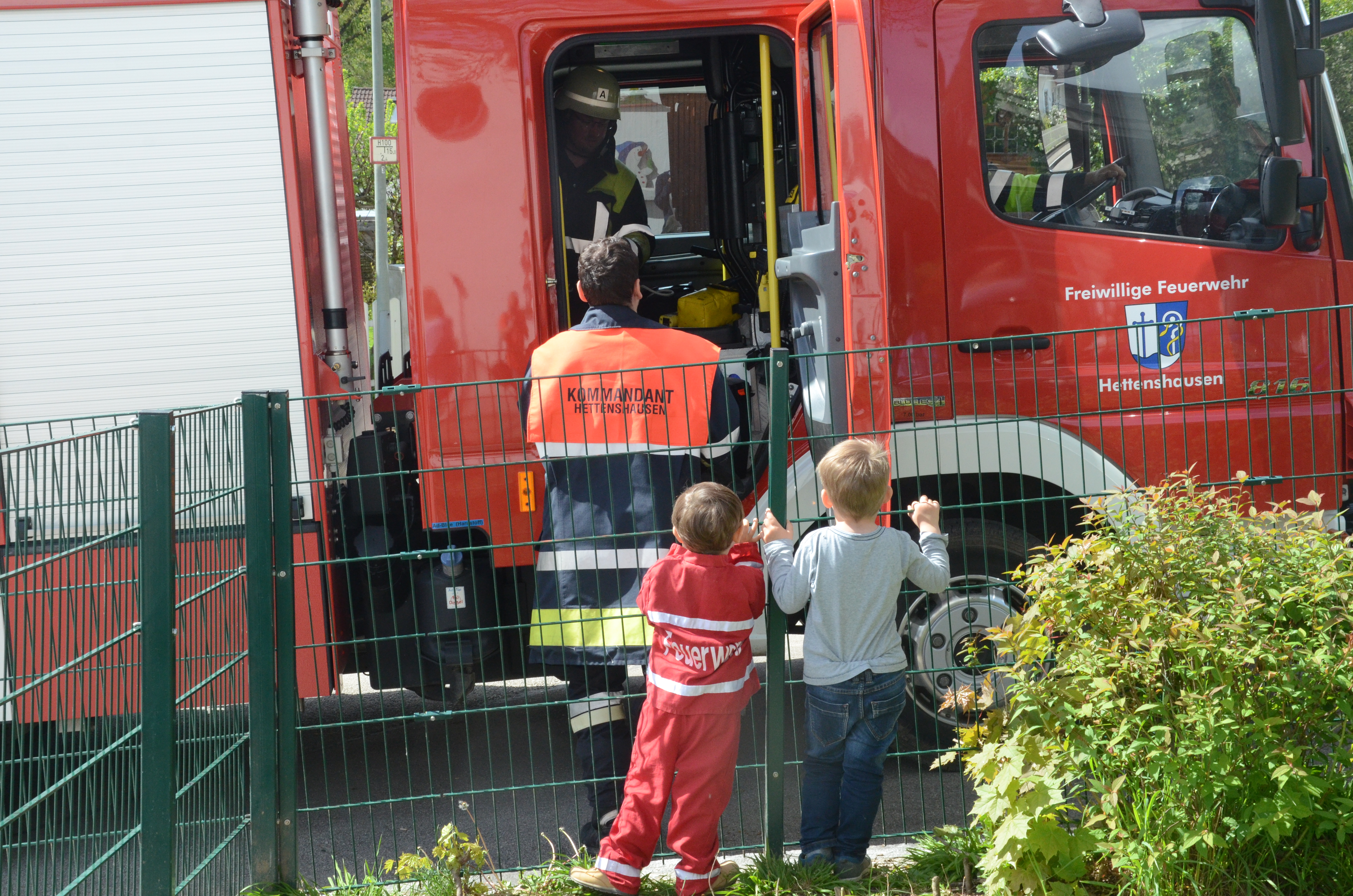 Auch in der Hettenshausener Kinderkrippe fand heute Vormittag eine solche Übung statt. Dort allerdings war die Begeisterung für die in voller Montur angerückten Floriansjünger bei einigen Sprösslingen eher gering. Im Gegenteil: Mancher Pimpf war offenbar, so wurde uns berichtet, etwas überfordert mit der Situation und den Tränen nahe.