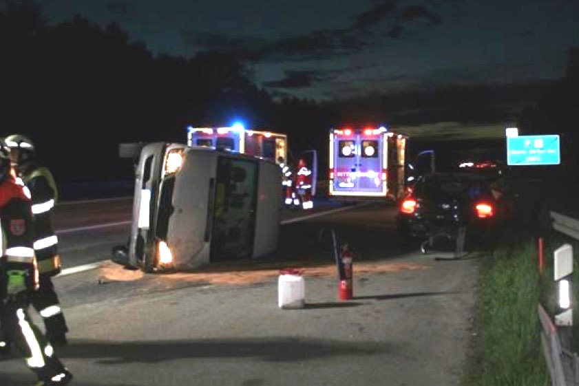 (ty) Ein Überholvorgang auf der Autobahn A9 bei Reichertshofen hatte gestern Abend fatale Folgen: Fünf Personen wurden bei dem heftigen Unfall verletzt, der Sachschaden an den drei beteiligten Fahrzeugen summiert sich auf weit über 100 000 Euro. Ein Sprinter kippte um, ein BMW und ein Porsche wurden geschrottet. Zwei Spuren in Richtung Norden waren rund 2,5 Stunden gesperrt.