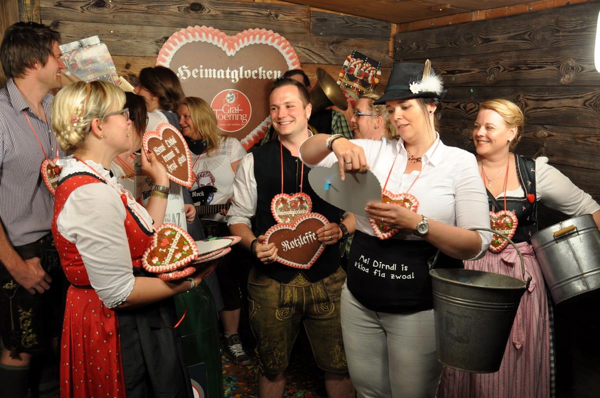 An eine solche Erfolgsgeschichte hätte wohl keiner gedacht, als Rainer Müller vor zwölf Jahren mit zehn Freunden die erste Trachtenglocken-Gaudi auf die Beine stellte. Inzwischen hat das Fest schon Tradition. Das Motto: „Heimatglocken – Wir tragen Tradition, ein Fest vo Freind füa Freind.“ Dabei ist „Wir tragen Tradition“ wörtlich zu nehmen. „Ohne Dirndl oder Lederhose gibt es keinen Einlass“, betont Müller. „Aber genau so wollen es die 600 Gäste, sie wollen Tradition tragen und mit bayerischen Schmankerln und bayerischer Musik ausgelassen feiern.“