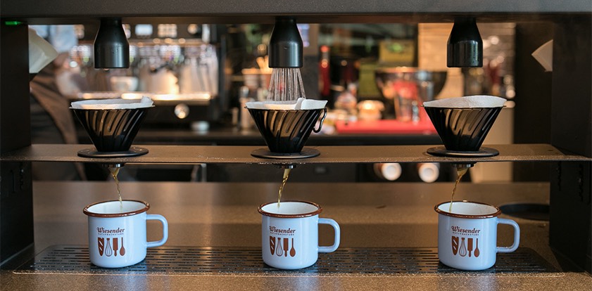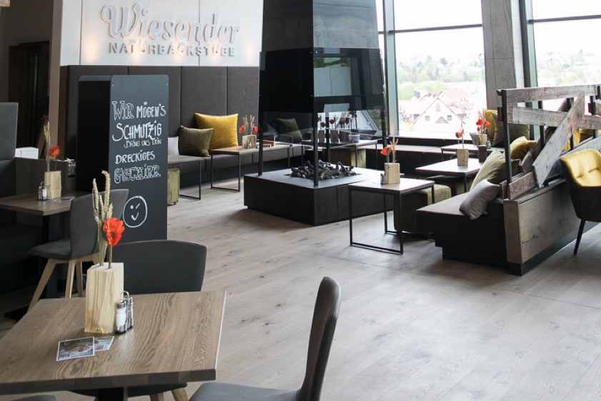 Die Planungen für das „Back-Erlebnishaus“, wie Firmen-Chef Karl Wiesender es nennt, liefen schon seit zehn Jahren, Ende November 2015 feierte man dann den Spatenstich, Mitte Dezember 2016 zogen Produktion und Verwaltung in den neuen Firmensitz ein – und jetzt ist es vollbracht: Die neue gläserne Backstube mit Café ist fertig. Geöffnet ist sieben Tage die Woche: montags bis samstags von 5.30 bis 18 Uhr und sonntags von 7.30 bis 18 Uhr.