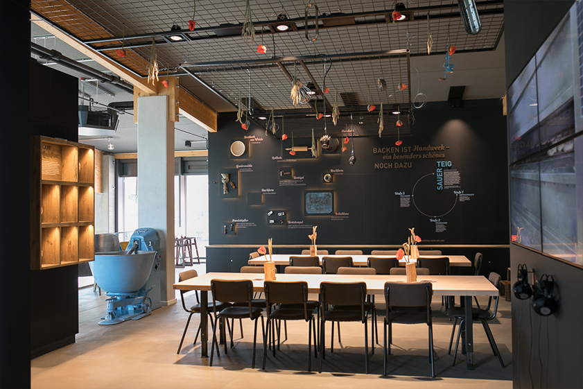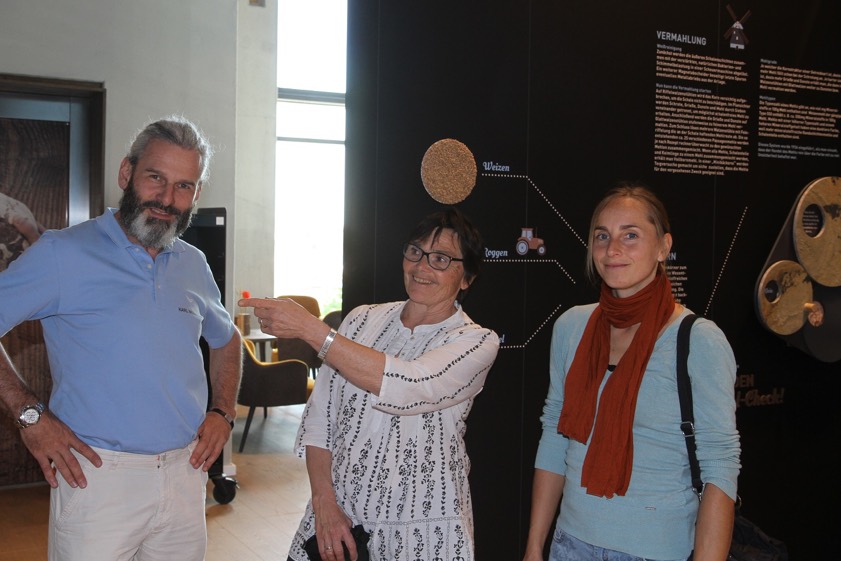 Im Außenbereich wachsen verschiedene Getreidearten, anhand von Info-Tafeln werden deren Eigenheiten und Verwendungsmöglichkeiten aufgezeigt. Drinnen ist anschaulich dargestellt, wie das Getreide geerntet und weiter verarbeitet wird. Vom oberen Stockwerk des Cafés aus kann man durch ein riesiges Fenster einen Blick in die Backstube werfen und den Mitarbeitern praktisch über die Schuler schauen. „Eine durch und durch transparente Backstube“, heißt es von der „Lokalen Aktionsgruppe“ (LAG), die sich um die Leader-Projekte im Landkreis kümmert.
