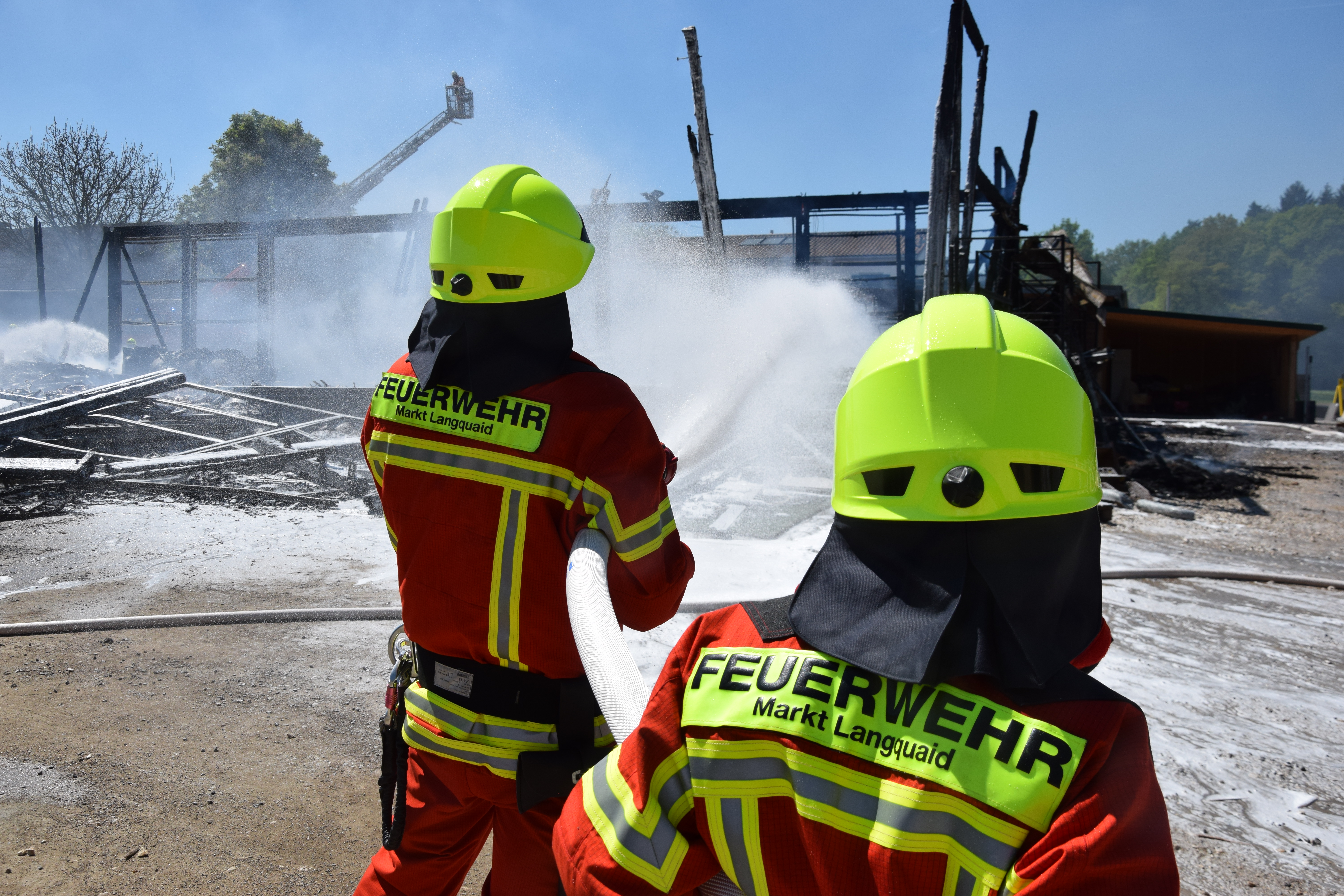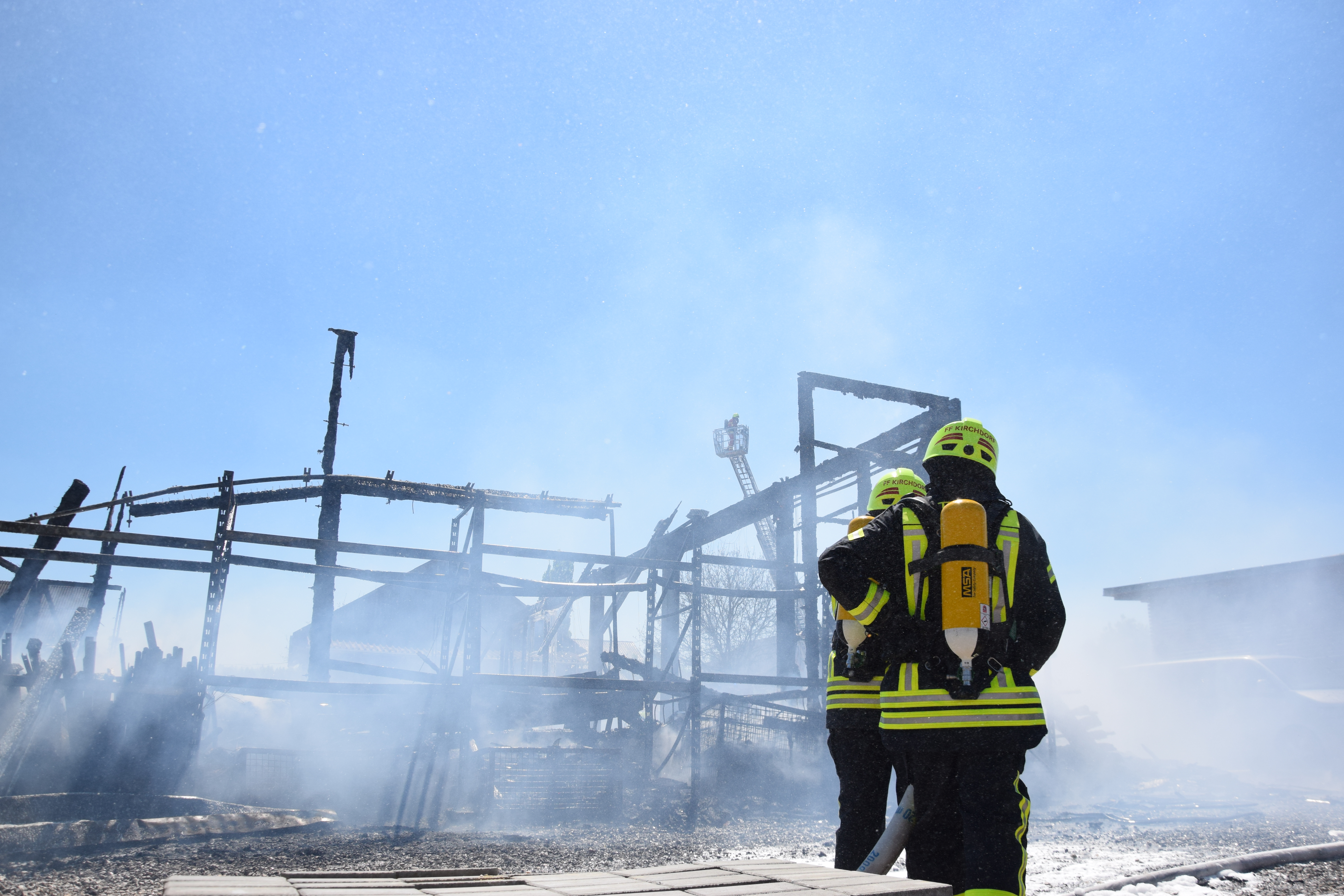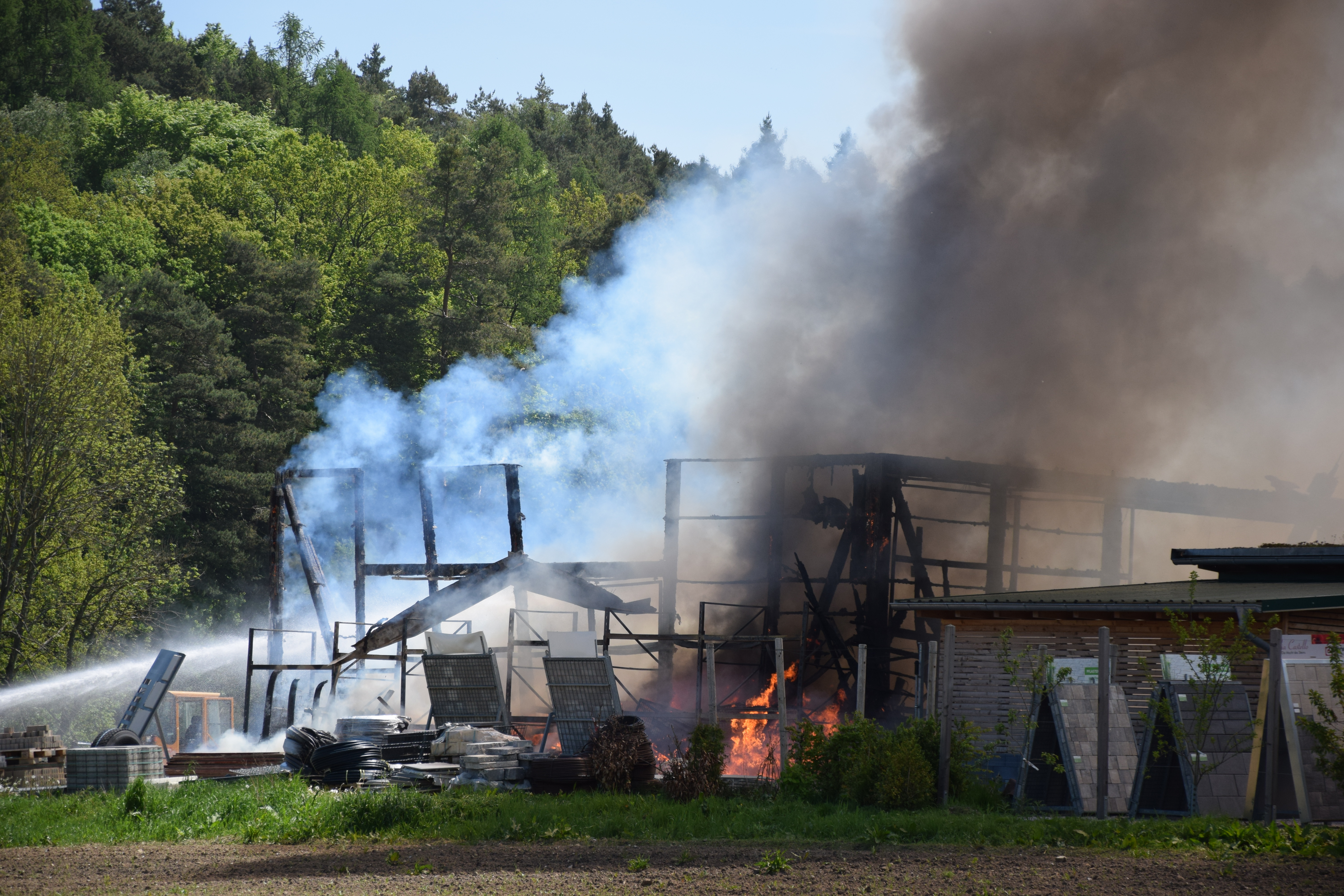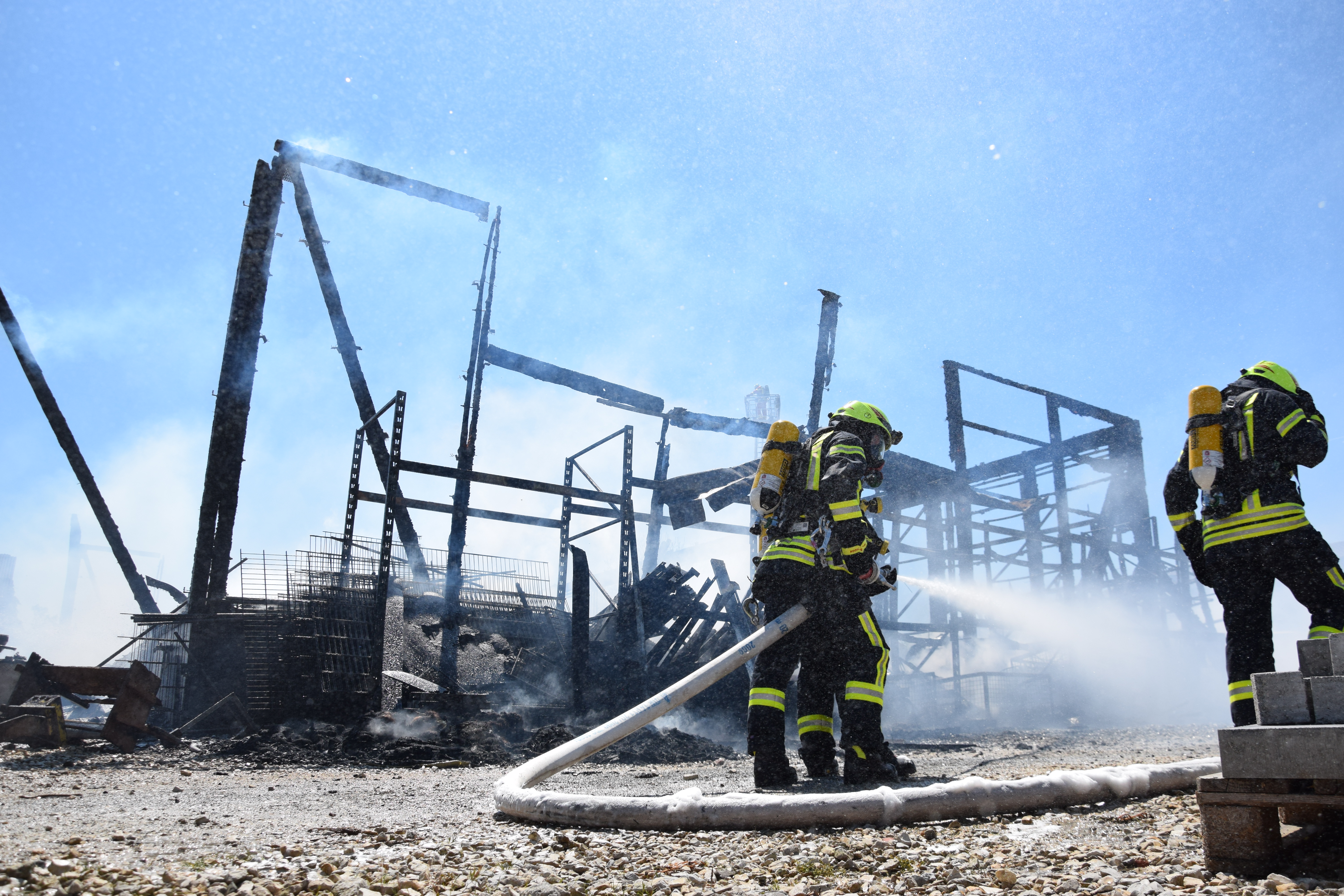 Als die Floriansjünger auf dem Einödhof eintrafen, stand das etwa 15 auf 25 Meter große Gebäude bereits in Vollbrand, es brannte letztlich bis auf die Grundmauern nieder. „Die örtlichen Feuerwehren konnten ein Übergreifen des Feuers auf benachbarte Gebäude verhindern“, so ein Sprecher des Polizeipräsidiums.
