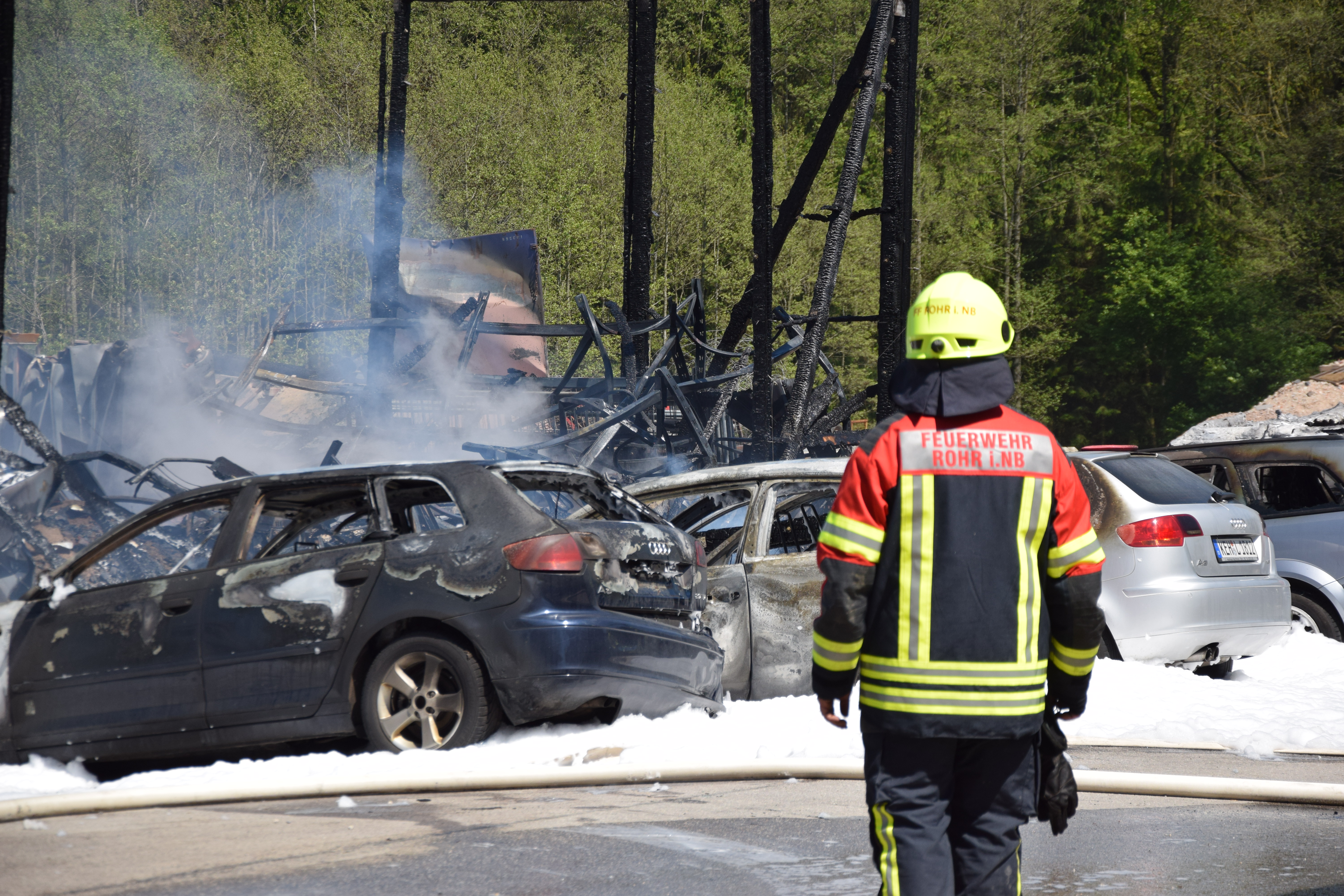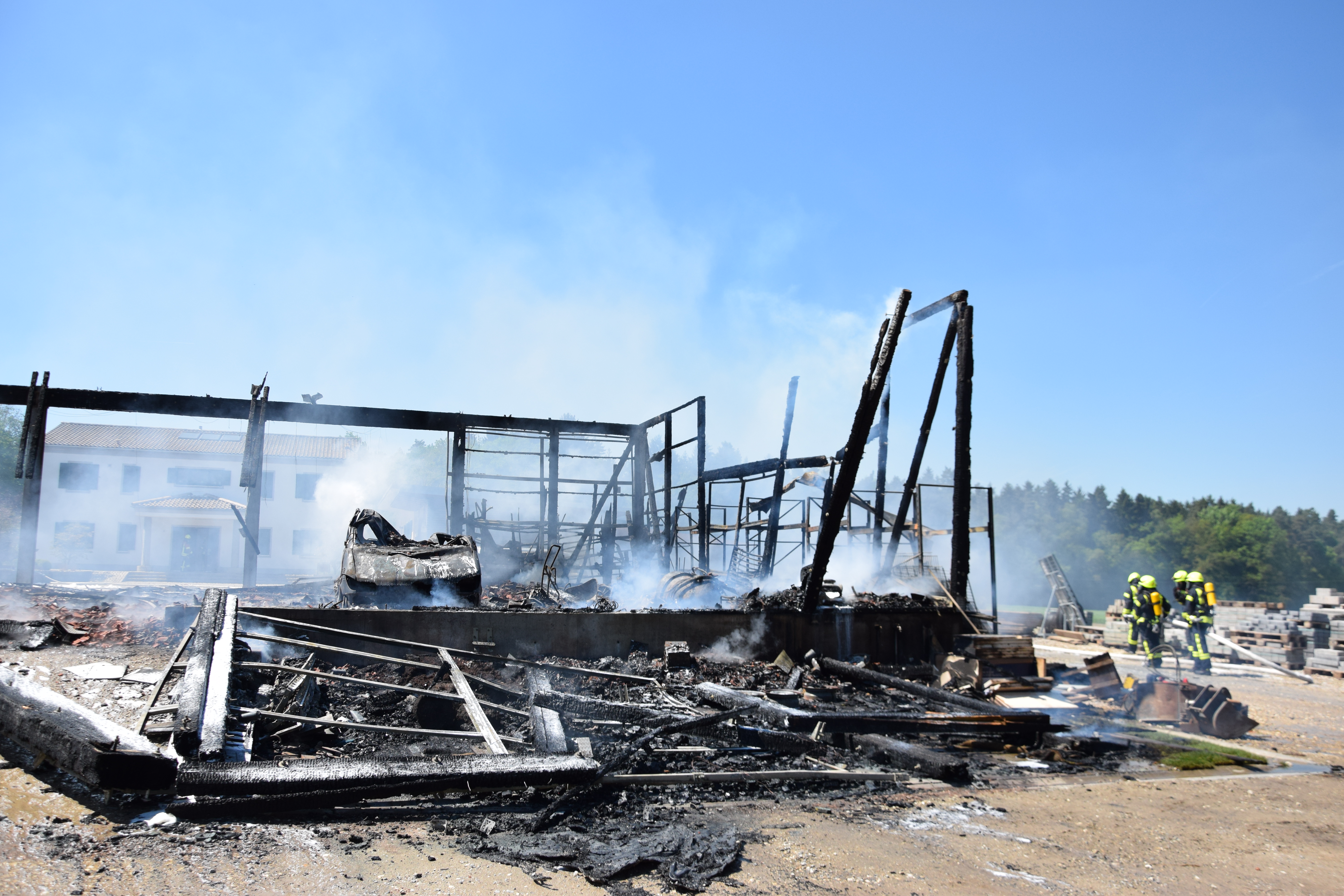 Bei Rohr ist eine Lagerhalle komplett niedergebrannt, die Ursache ist noch unklar. Der Schaden ist immens, zwei Personen wurden verletzt.