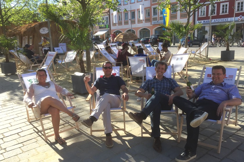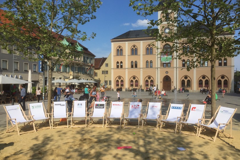 120 Liegestühle stehen jetzt mitten in der Stadt bereit und – das unterstreicht Stahl – sie können kostenfrei genutzt werden. Übrigens auf dem gesamten Hauptplatz. „Mann muss nicht im Sand sitzen“, sagt der IGLI-Chef. „Jeder kann sich mit dem Liegestuhl dort niederlassen, wo es ihm am besten gefällt und wo er sich eben entspannen möchte.“ Es seien auch schon Liegestühle am Stadtbrunnen gesichtet worden, berichtet Stahl – und freut sich darüber, denn gerade das Ungezwungene mache ja den Reiz aus.