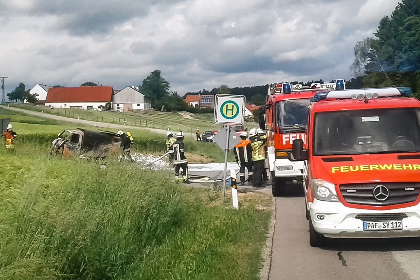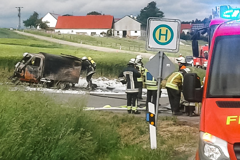 (ty) Gestern Nachmittag gegen 16 Uhr wurden die Einsatzkräfte der Feuerwehr Scheyern wegen eines auf der Kreisstraße zwischen Scheyern und Gerolsbach brennenden Fahrzeugs alarmiert. Eine dreirädrige „Ape“ hatte Feuer gefangen. Als die Floriansjünger eintrafen, stand das Gefährt bereits im Vollbrand. „Unter schwerem Atemschutz und mit Einsatz von Löschschaum konnte das Feuer schnell und umfassend gelöscht werden“, berichtet ein Feuerwehr-Sprecher.