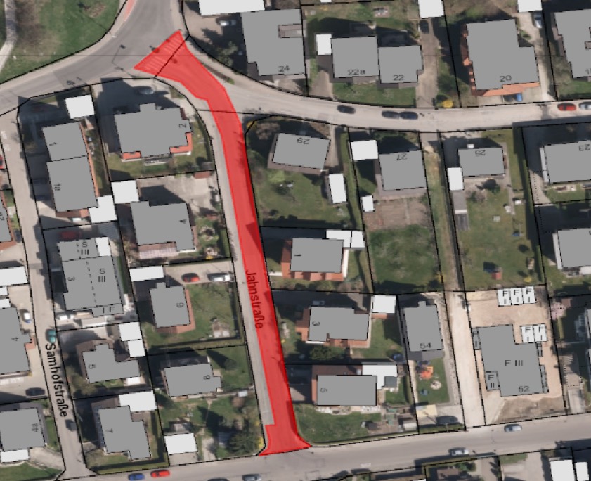 Die Verkehrsteilnehmer werden gebeten, die Jahnstraße zu umfahren, während der Baumaßnahmen ihre Autos nicht auf der Fahrbahn abzustellen und bei Bedarf außerhalb der Jahnstraße zu parken.