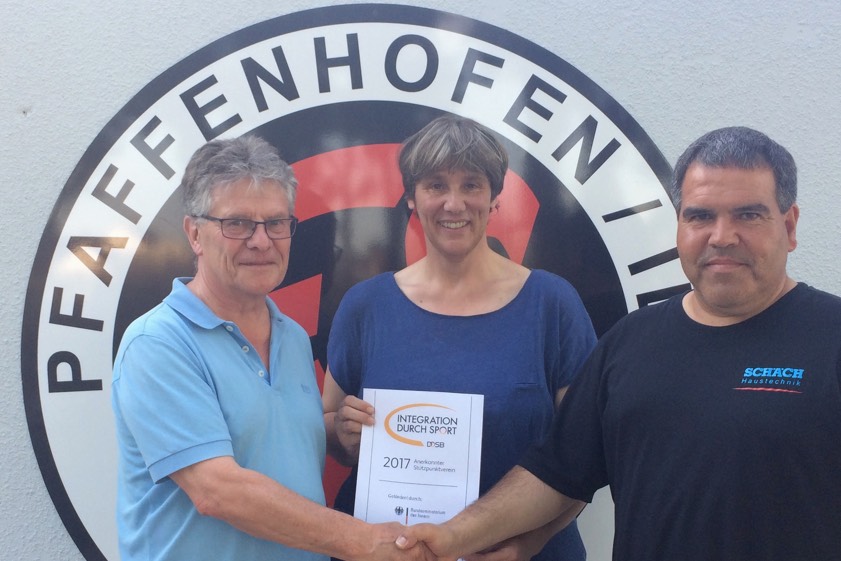 (ty) Der bayerische Landes-Sportverband (BLSV) hat dem FSV Pfaffenhofen das Siegel als Stützpunktverein in Sachen „Integration durch Sport“ verliehen. Die entsprechende Urkunde überreichte BLSV-Kreischef Florian Weiß an den Vereinsvorsitzenden Ramazan Yaylakci und an die Abteilungsleiterin für Cricket, Christine Franke, die auch den Antrag auf Stützpunktförderung gestellt hatte.