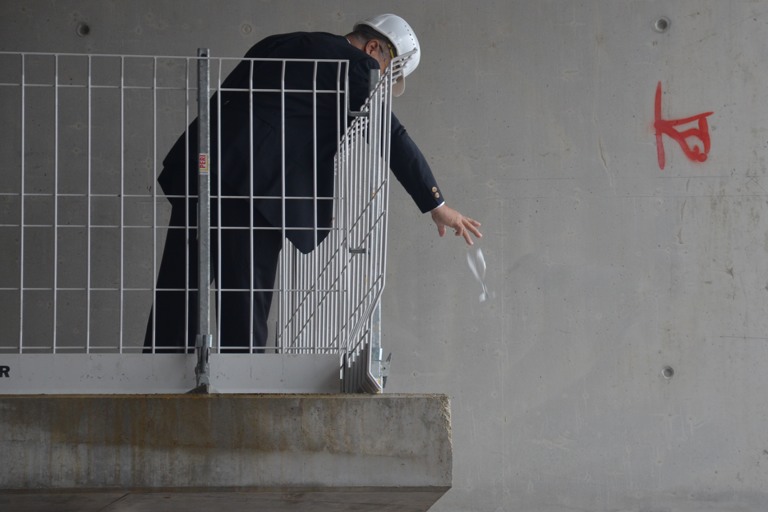 Zum Richtfest gehört nicht nur der Richtspruch, sondern auch das Zerdeppern der Gläser.