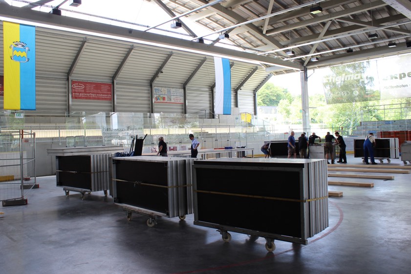 Die Vorbereitungen im Eisstadion laufen.