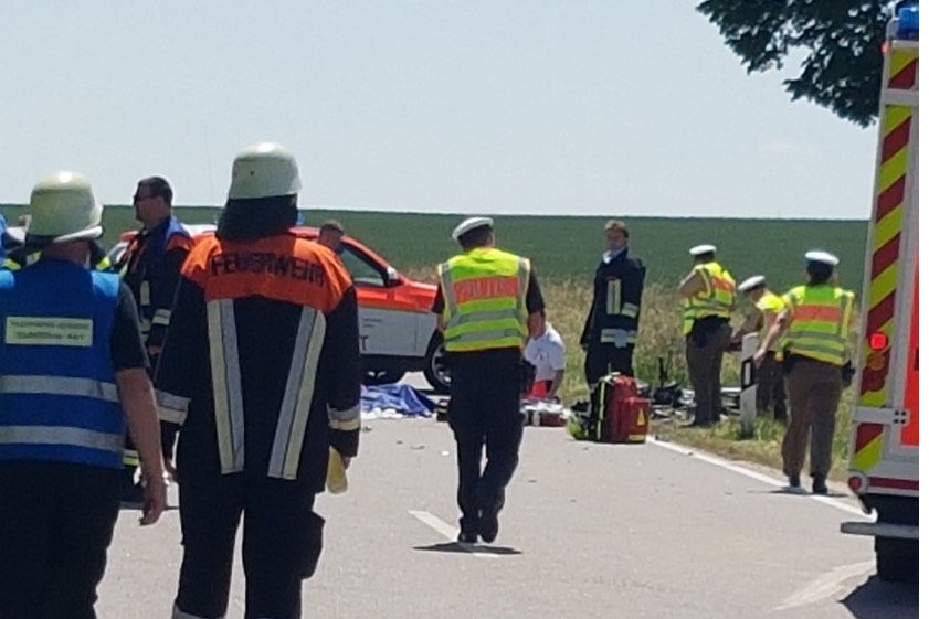 Nach ersten Informationen eines Reporters, der vor Ort ist, soll Folgendes passiert sein: Ein 21-jähriger Motorrad-Lenker war – von der B 16 her kommend – auf der Staatsstraße unterwegs, ein älteres Ehepaar radelte auf einem Feldweg. Der Ehemann konnte mit seinem Fahrrad die Staatsstraße noch überqueren, während seine 76-jährige Frau das Motorrad offenbar übersah und mit diesem kollidierte. Der 21-jährige Biker wurde leicht verletzt in ein Krankenhaus gebracht. Die Frau starb trotz aller Bemühungen der Rettungskräfte noch am Unfallort.
