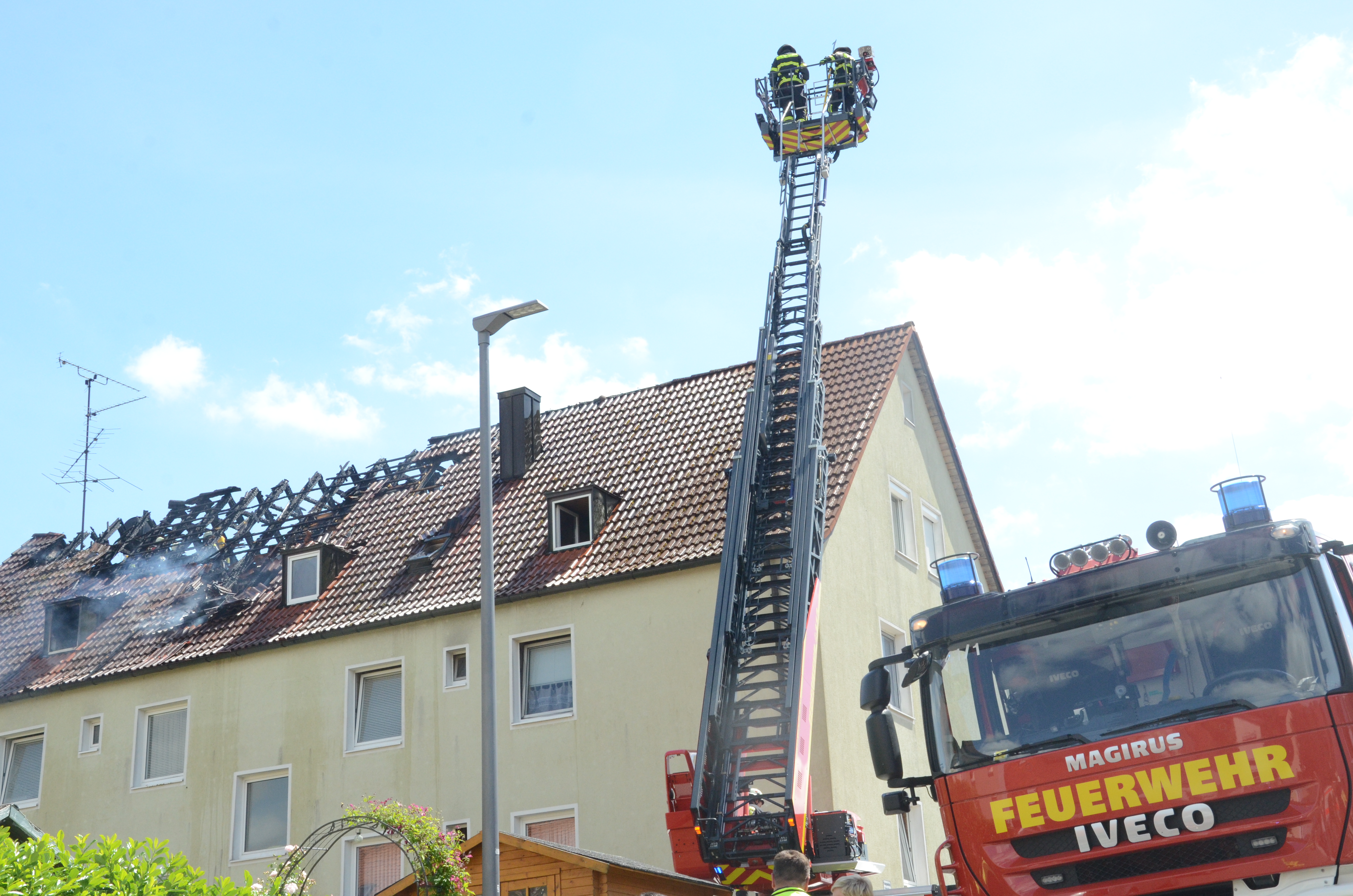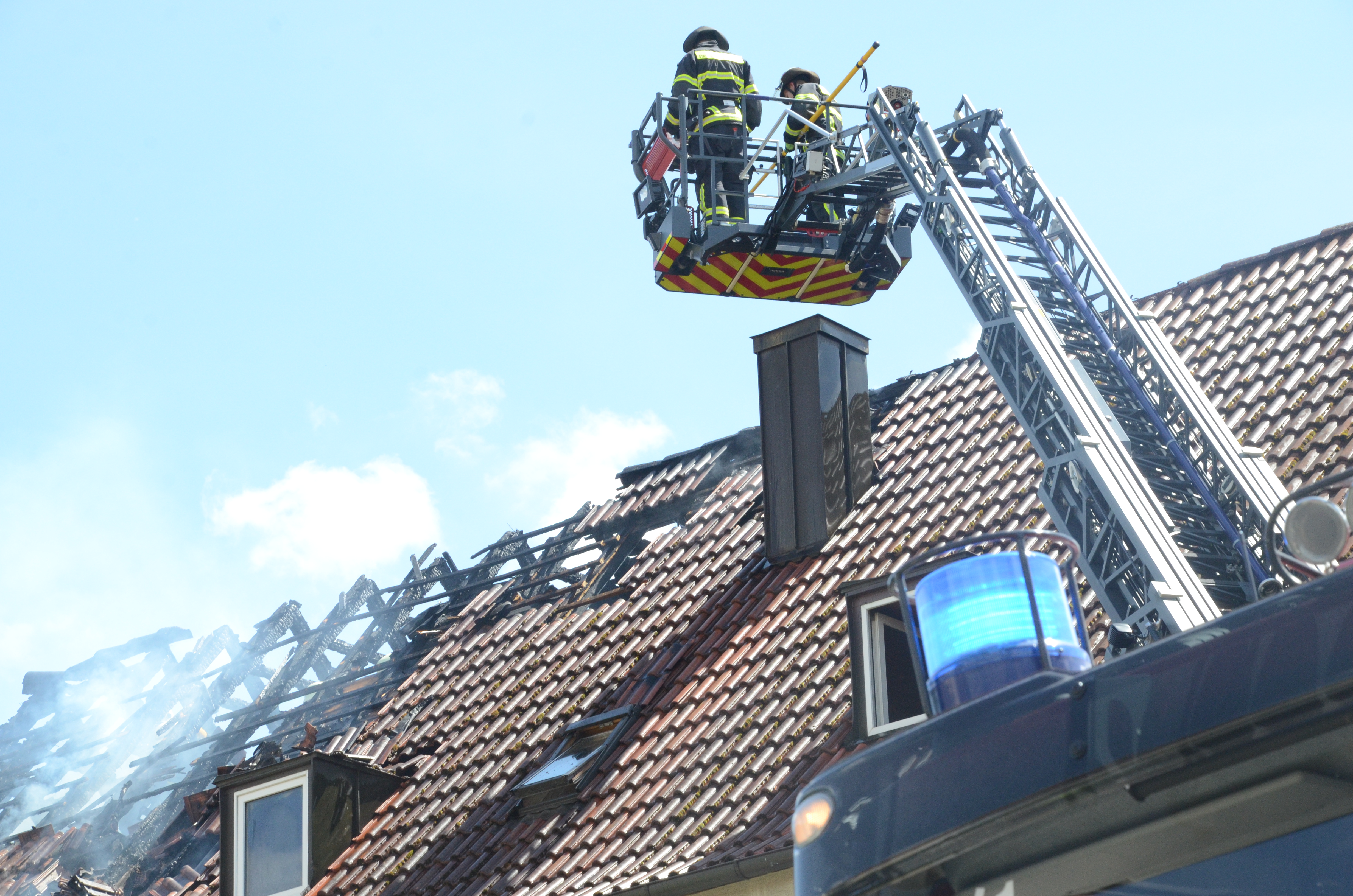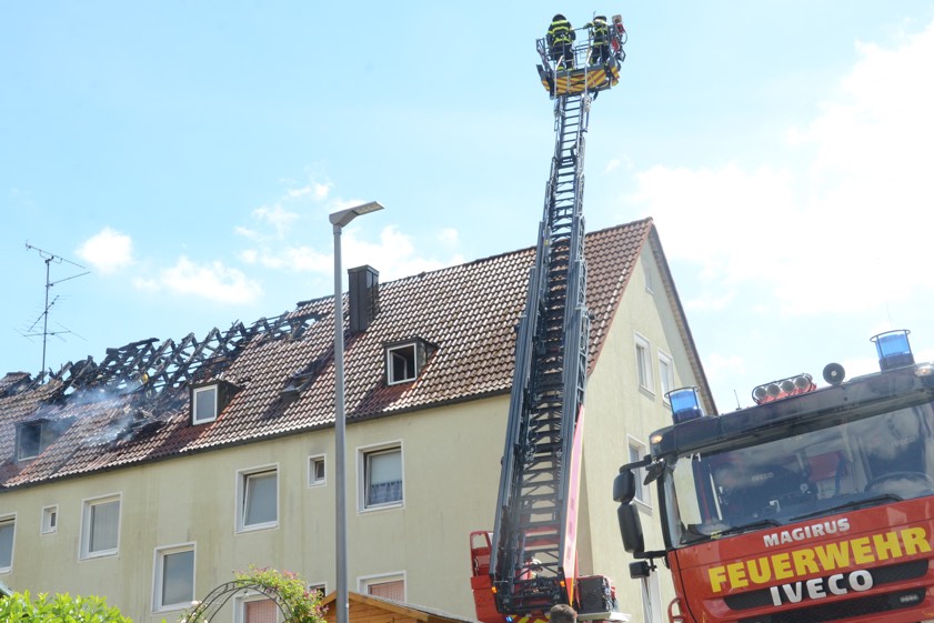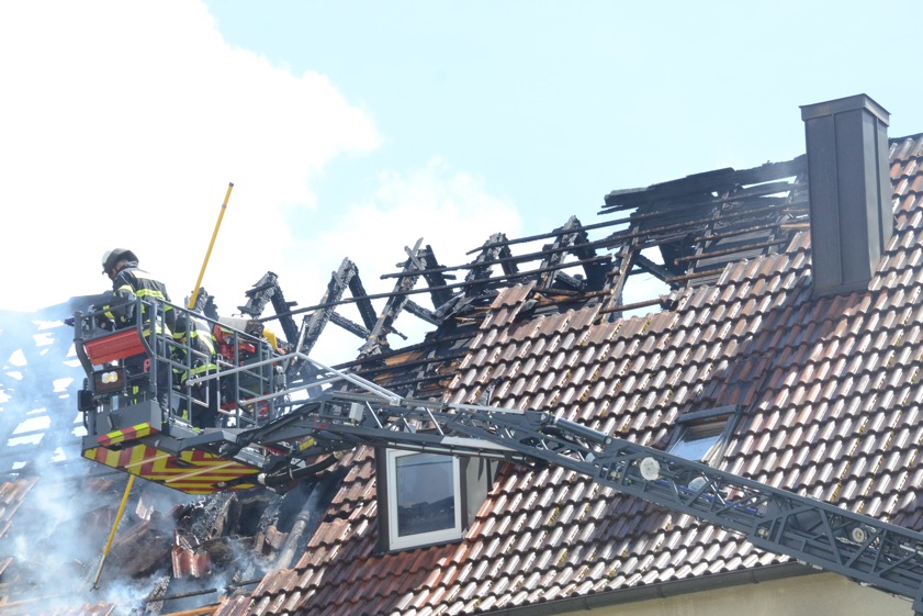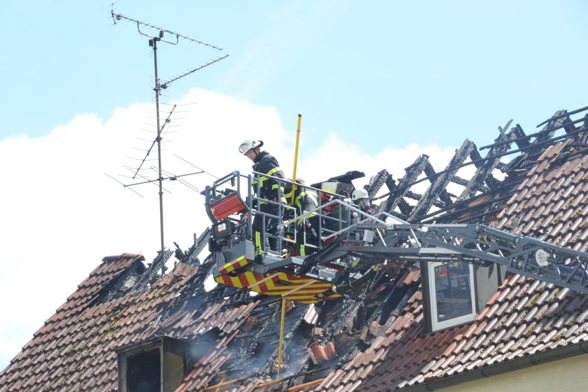 „Durch das rasche Eingreifen der Feuerwehren gelang es, das Feuer einzudämmen und die Ausbreitung der Flammen auf das komplette Wohngebäude zu verhindern“, hieß es heute aus dem Polizeipräsidium Oberbayern-Nord. „Trotzdem waren bis dahin große Teile des Dachstuhls ein Raub der Flammen geworden.“ Zudem sei bis auf weiteres ein Großteil der Wohnungen in dem Gebäude nicht bewohnbar. Der entstandene Sachschaden wird von der Kripo inzwischen in einer Größenordnung um 300 000 Euro angesiedelt. Gestern war in ersten, vorsichtigen Vermutungen von um die 200 000 Euro die Rede.