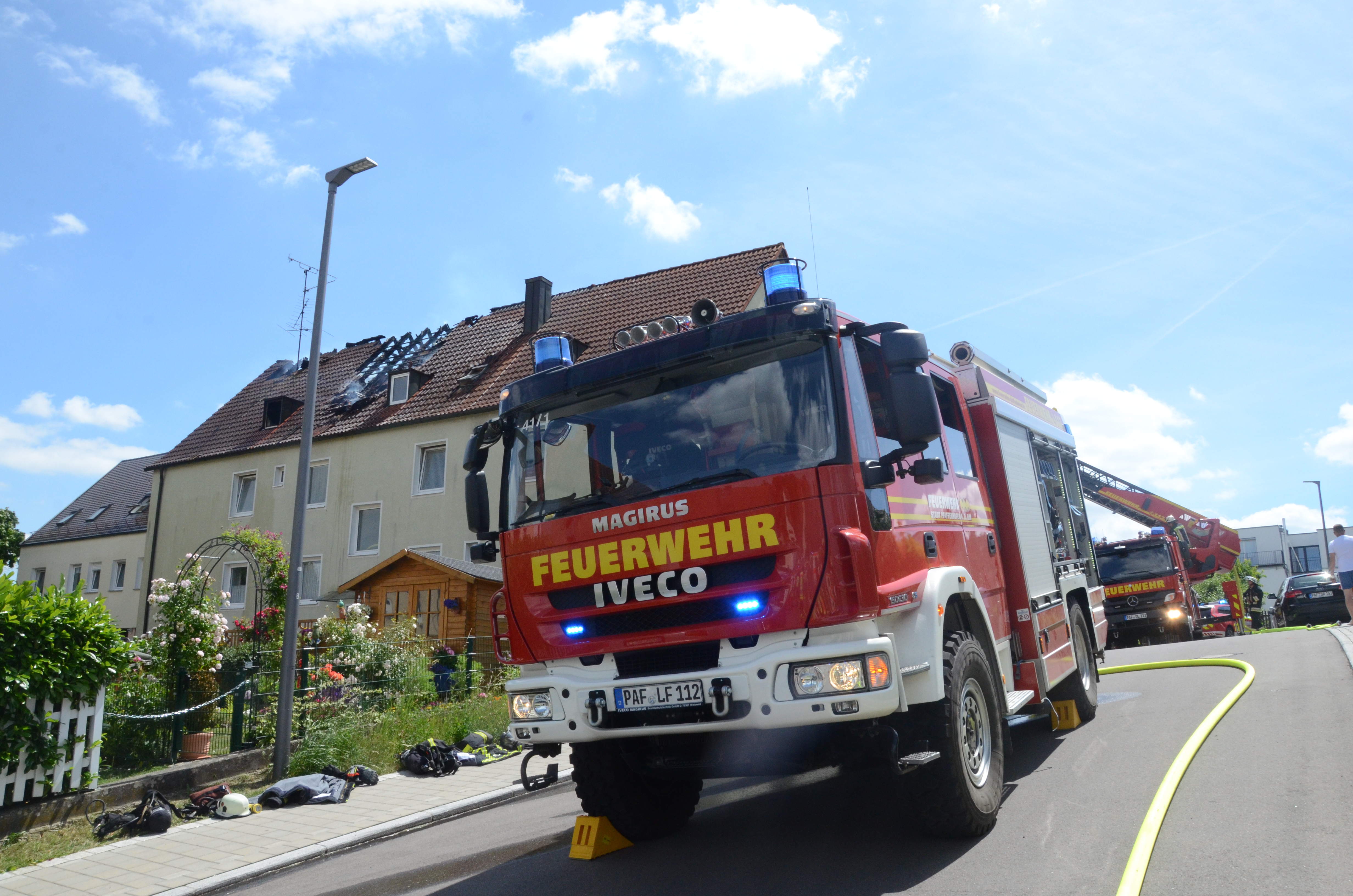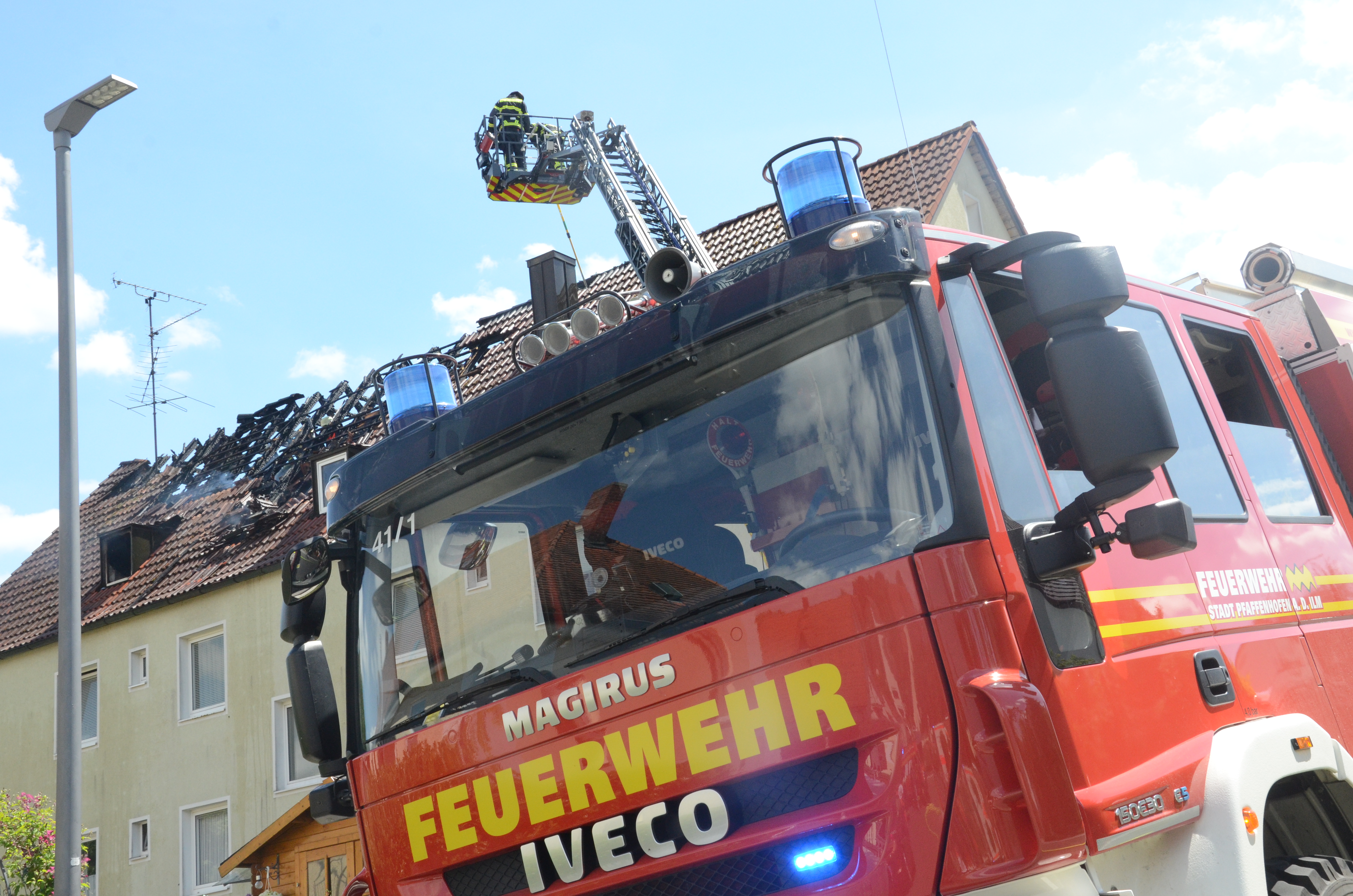 Gestern gegen 13.20 Uhr war der Brand in dem Mehrfamilienhaus bemerkt worden. Neben der Pfaffenhofener Feuerwehr rückten auch die Kameraden aus Hettenshausen und Scheyern sowie der Rettungsdienst, ein Notarzt und das THW an. Beim Eintreffen der ersten Einsatzkräfte hatten die Flammen bereits auf den Dachstuhl übergegriffen. Der örtliche Feuerwehr-Kommandant Roland Seemüller berichtete gegenüber unserer Zeitung von einem Vollbrand im betroffenen Bereich des Hauses.