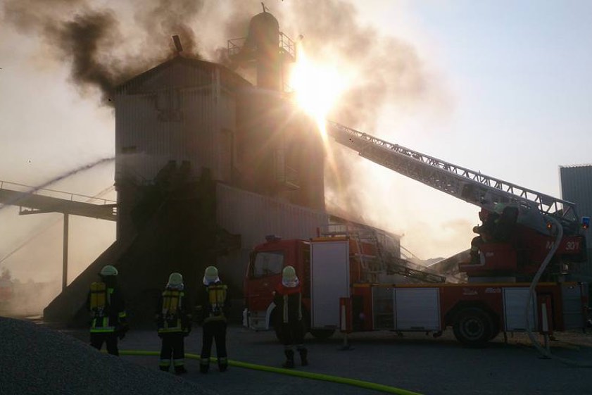 (ty) Heute gegen 6.30 Uhr wurde die Polizei über den Brand auf dem Gelände eines Kieswerkes in Moosburg an der Isar informiert. Bei Eintreffen der Einsatzkräfte stand eine in einer großen Halle verbaute Kiesbrechanlage in Brand. Diese sowie das Gebäude selbst wurden laut Polizei erheblich beschädigt. Nach vorläufiger Einschätzung dürfte der Schaden mindestens 500 000 Euro betragen. Der angrenzende „Aquapark“ wurde für den Badebetrieb gesperrt. Eine mögliche Umweltgefährdung sei nicht auszuschließen, teilte das Freisinger Landratsamt mit. Der Flugbetrieb sei nicht beeinträchtigt.